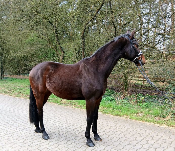 Our four-year-old gelding, standing at 16.1 hh – compact, elegant, and therefore ideally suited as a modern ladies' horse. He impresses with three very good basic gaits, a lively movement pattern, and plenty of natural forwardness. He possesses a good conformation and consistently displays a gentle, well-behaved, and friendly demeanor in daily handling. Price excluding VAT.