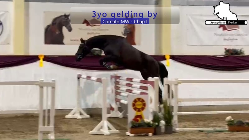 Wir bieten Ihnen hier einen gut zu reitenden kompakten jungen Wallach, dem die Welt offen steht. Er ist ein junges Springtalent, der bereits sich sehr sicher für sein Alter unter dem Sattel in allen drei Grundgangarten und an den ersten kleinen Sprüngen präsentiert. Im Galopp ist er auch schon sehr ausbalanciert so dass er sicher im Handgalopp galoppiert und ebenfalls die Fliegende Wechsel gut springt. Er ist ein leichtrittiges als auch vorsichtig und in guter Art springendes Pferd, den man sich gut in mehreren Bereichen als Springpferd, sowohl als Eventer, sowie als Hunter oder Freizeitpartner vorstellen kann.