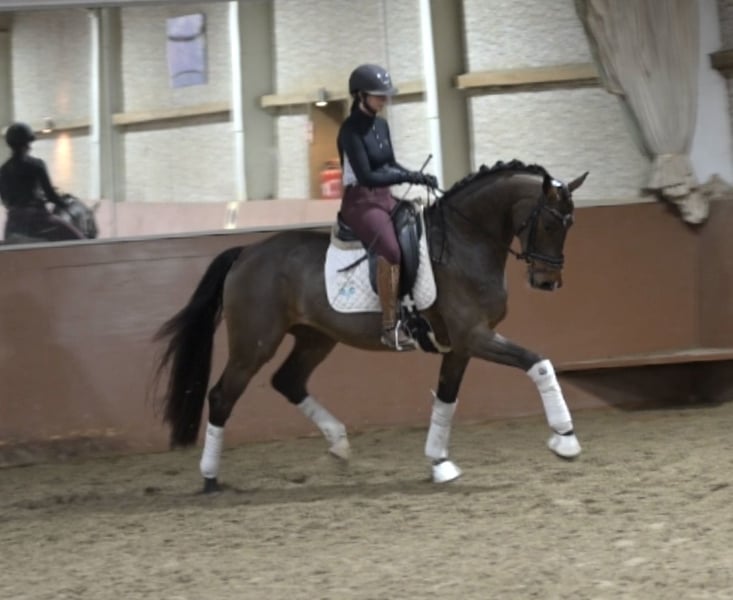Dear Interested Parties, To arrange a trial ride, please send me a WhatsApp message. For further questions, I am available via WhatsApp during the day, and you can reach me best by phone between 4 PM and 7 PM. I look forward to hearing from you. www.angelina-devittorio.de ⭐️Taurencio⭐️ Age: 4.5 years (2021) Height: approximately 16.1 hh Lineage: Taurus x St. Moritz Training level: ridden Health certificate: Good current health certificate including X-rays available The price is fixed For sale is a lovable, beautiful young horse by Taurus, nearly five years old, with three basic gaits of exceptional quality. This highly talented young horse impresses with a completely clear mind and an exceptionally gentle character. Although this wonderful gelding has only been under saddle for about four months, he is already a true amateur horse. His extraordinary quality is evident even now: he has an outstanding uphill canter, an excellent walk with significant overstep, and very good trot mechanics. Due to his training level, riding ability on A/L level is desirable, and he should be in the best and most supportive hands. He presents as a very easy training horse with excellent prospects for high-level sport. His top-quality foundation and rideability make him a horse that brings joy every day. He is absolutely steady-nerved—even in unfamiliar environments—and is minimally affected by external influences. In daily handling, he can still be a bit shy at times, but never mean. Under saddle, he convinces with his absolute calmness and gentle character. This is an absolute dream horse for sale—ready to continue his training in his new home. ⚜️Phone: 0171-3438949 ⚜️a.devittorio@web.de ⚜️https://www.ehorses.de/angelinadevittorio Facebook and Instagram: Angelina De