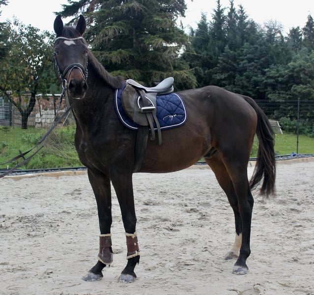 Dieser 4-jährige Wallach präsentiert sich mit korrektem Gebäude. Er überzeugt durch viel Elastizität, Athletik und eine ausdrucksstarke Bewegung mit drei sehr guten und vielversprechenden Grundgangarten. In der Arbeit zeigt er sich aufmerksam, sehr lernwillig und unkompliziert und will dabei immer gefallen. Er ist angeritten und arbeitet dabei sehr zuverlässig, ausgeglichen und konzentriert mit. Sein Charakter ist stets freundlich, ruhig und menschenbezogen – ein kopfklares und umgängliches Pferd, welches täglich Freude bereitet. Aufgrund seiner Rittigkeit und Ausgeglichenheit eignet er sich ideal als Allrounder für ambitionierte Reiter, die ein verlässliches Nachwuchspferd mit Zukunft für den Freizeit- oder Turniersport suchen. Der Wallach ist geimpft, regelmäßig entwurmt und dem Schmied vorgestellt. Videos und weitere Infos gern auf Anfrage.