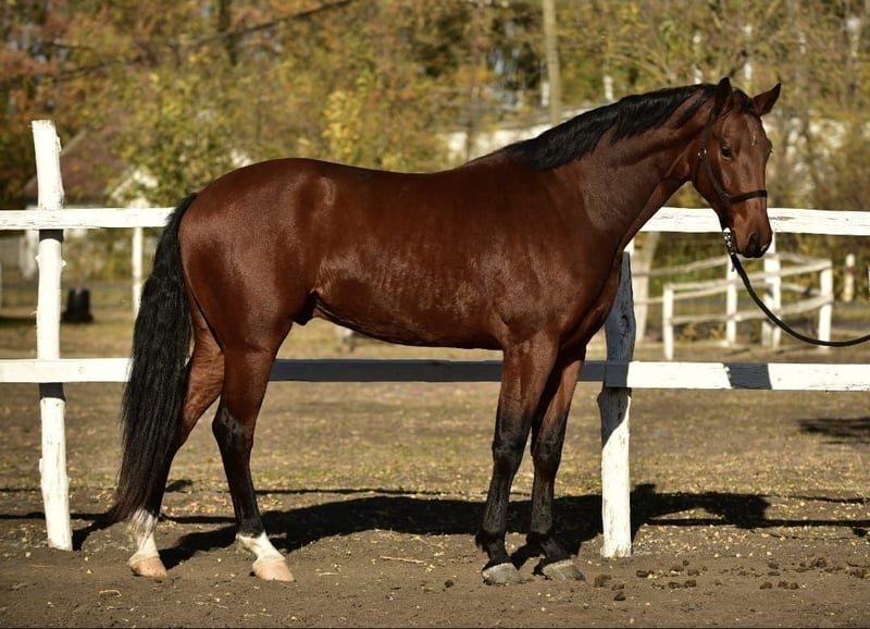 Jeune hongre de 4 ans, mesurant 1,65 m au garrot. Il est en parfaite santé et ne présente aucune mauvaise habitude. Un cheval magnifique. Il a été monté quelques fois. Il connaît les bases, il est calme, obéissant et facile à manipuler. Grâce à son excellente lignée, il possède un grand talent pour le saut d'obstacles ; ses mouvements sont élastiques et vigoureux. Malgré son jeune âge, il est équilibré et fiable – idéal comme base pour le sport ou le loisir.