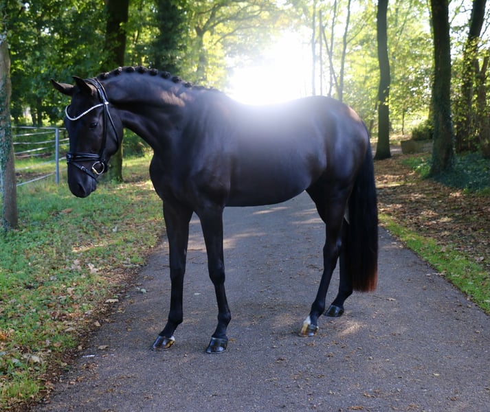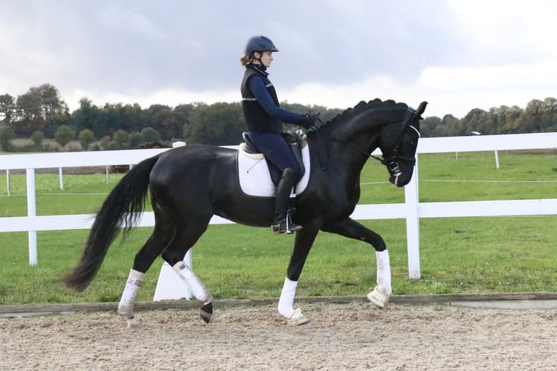 ‼️ Inquiries exclusively via the phone number provided below ‼️ Location: 49509 Recke | Westphalian | Gelding | Black | Born 2022 | 16.1 hh | Sired by Donier out of Franziskus x Paradiesvogel A stunningly presented gelding with three very good basic gaits. The 3-year-old “Donald” not only impresses with his fearless nature and willingness to work but also boasts an exterior that leaves nothing to be desired. “Donald” was backed in July and is very eager and motivated to work. His dam already has offspring successful in riding horse and dressage competitions. With further training, this promising young horse is developing into a high-quality, absolutely performance-oriented prospect. Anyone looking to secure a future star should not miss the opportunity to acquire “Donald.” A current, stress-free X-ray examination, including neck and back images, is available. https://youtu.be/GevPdRrHfDs?si=Ji5RbgJHH2M172h9 For serious inquiries, please contact us by phone at +49 170 7941333.