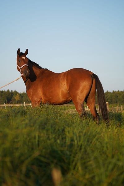 For sale: German Sport Horse – Ideal for leisure and sport We are offering a beautiful dark bay gelding, born in 2021. Standing at 16.1 hh, he combines classic sporthorse qualities with plenty of charm. This versatile leisure partner is well-prepared for riding life and demonstrates exceptional reliability and friendliness both in handling and in the field. Castano is comfortable with rider weights in walk and trot, both on the riding arena and in open terrain. X-rays of the front legs show no findings. The price is negotiable for quick decision-makers. He is sure to become a wonderful partner someday! Pedigree: Dia Corrado x Ramiro's Match x Wertschatz I have owned him since 2022 and have prepared him to the best of my ability for riding. Castano is a affectionate and gentle gelding. He is familiar with all farm noises, whether it’s a brush cutter or a front loader, and remains completely calm in all situations. Currently, he is kept in a pasture with a herd of geldings, where he enjoys playing and socializing. He gets along well with other horses and has always been easy to integrate into new groups. Castano is a very people-oriented horse who enjoys learning new things, whether it's performing a Flehmen on command or the horse yoga pose. He has a lot of fun during training. If you are interested or have further questions, please feel free to contact me. Arrange a viewing appointment and see for yourself what a fantastic horse he is!
