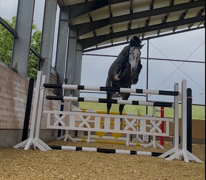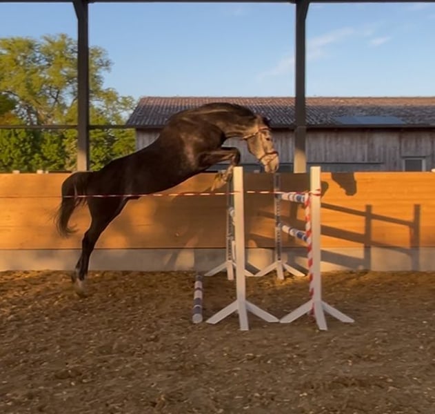 Untouched and very promising! Contagio x Coronas x Goldlack Campino is a 5-year-old gray gelding who is loyal and very human-oriented. Due to personal reasons and the lack of a rider, he has not yet been introduced to competition. He is fully ready to go and is waiting for the right rider to start his journey with. An absolute top horse for show jumping and eventing, and he also holds his own in dressage. He consistently demonstrates relaxed and expressive gaits with good scope. Currently, Campino is being offered to experienced riders due to his somewhat strong-willed and adolescent character. Informative video material available. Recent X-rays from head to hoof are also on hand.