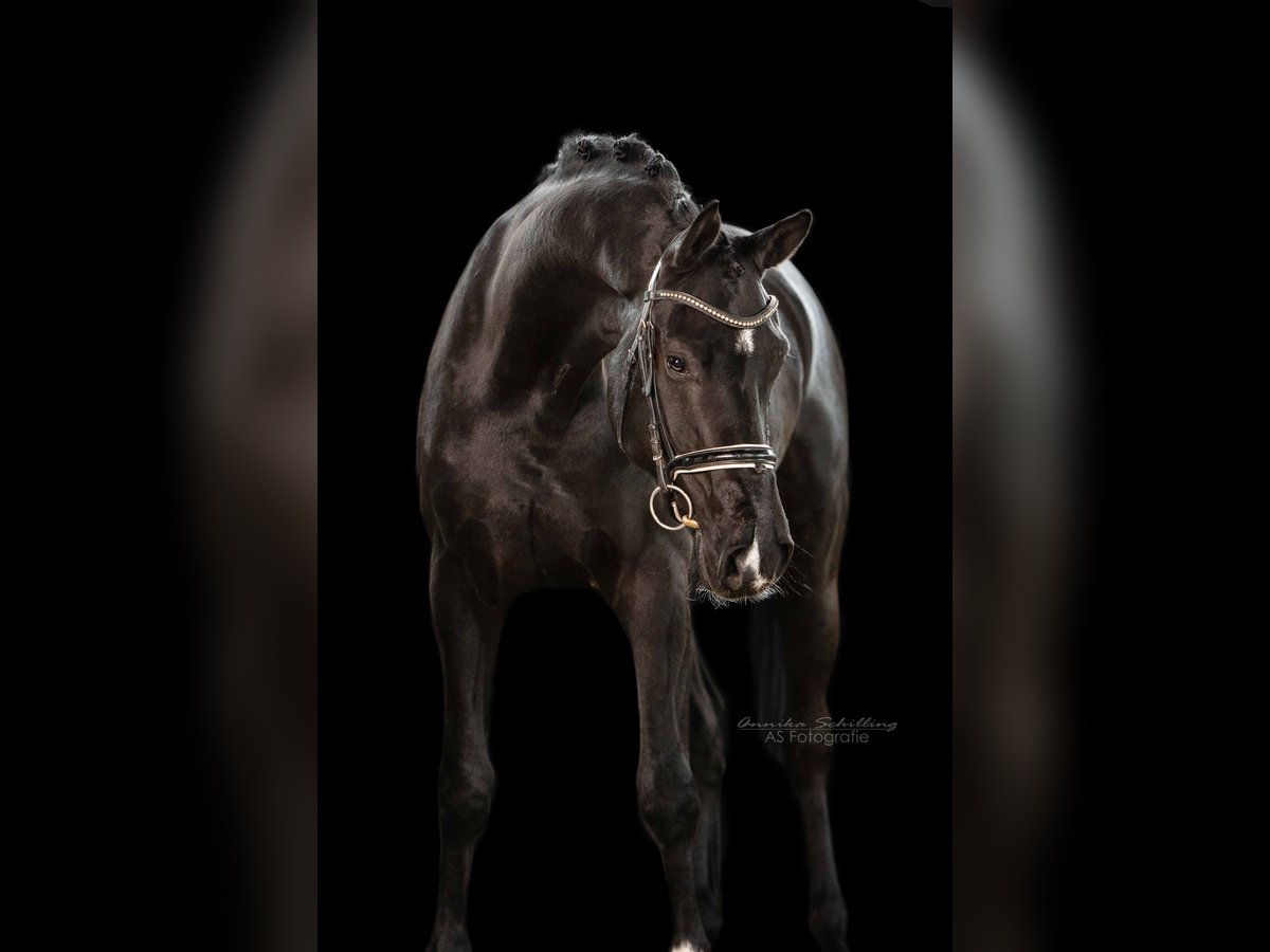 Movement & Type This 5-year-old gelding by Secret out of Stedinger immediately impresses with his modern appearance and expressive type. He also possesses three outstanding gaits characterized by high elasticity, good shoulder freedom, and an active hind leg. Notably, he already demonstrates a strong willingness to collect. Riding & Handling In daily training, he proves to be very well-behaved, calm, and pleasant to ride. He provides his rider with a great sense of security and is therefore suitable even for more nervous riders. In handling, he is completely straightforward and reliable. Training Level - Age-appropriate and gently started, currently at dressage horse class A level - Lateral work initiated - Directly from the breeder Prospects With his quality, rideability, and willingness to collect, he offers excellent prerequisites for a successful career in dressage – a horse that immediately stands out due to his presence alone. - Current X-ray examination available - Detailed video upon request We look forward to hearing from you or receiving your call if you are interested.