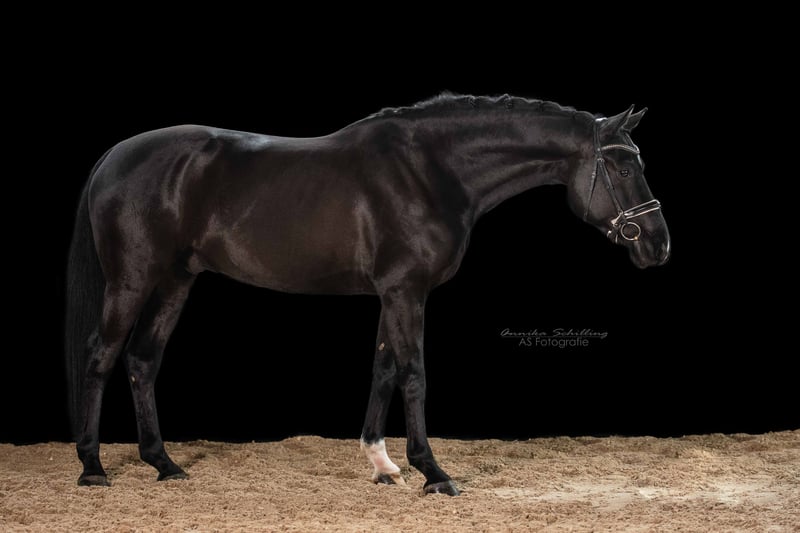 Bewegung & Typ 5-jähriger Wallach von Secret x Stedinger, der durch seine moderne Aufmachung und seinen ausdrucksstarken Typ sofort überzeugt. Zudem bringt er drei überragende Grundgangarten mit viel Elastizität, guter Schulterfreiheit und einer aktiven Hinterhand mit. Besonders hervorzuheben ist seine bereits jetzt sehr ausgeprägte Versammlungsbereitschaft. Rittigkeit & Handling Im täglichen Training zeigt er sich sehr brav, ausgeglichen und angenehm zu reiten. Er vermittelt seinem Reiter viel Sicherheit und ist daher auch für ängstlichere Reiter gut geeignet. Im Umgang ist er absolut unkompliziert und zuverlässig. Ausbildungsstand - altersgerecht und schonend aufgebaut und derzeit auf Dressurpferde A -Niveau - L-Lektionen begonnen - direkt vom Züchter Perspektive Mit seiner Qualität, Rittigkeit und Versammlungsbereitschaft bringt er beste Voraussetzungen für eine erfolgreiche Karriere im Dressursport mit – ein Pferd, das allein durch seine Präsenz sofort ins Auge fällt. - aktuelle röntgenologische Ankaufsuntersuchung vorhanden - ausführliches Video auf Anfrage Bei Interesse freuen wir uns über Ihre Nachricht oder Ihren Anruf.