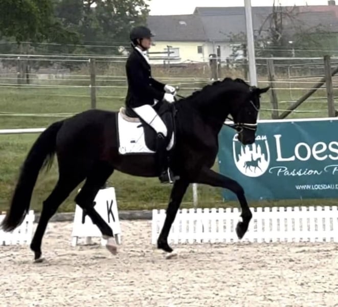 Dear Interested Parties, Detailed videos are available upon request via WhatsApp at +49 171 3438949. For arranging trial rides, please send me a WhatsApp message. If you have further questions, I am reachable during the day via WhatsApp, and best contact by phone is between 4 pm and 7 pm. I look forward to hearing from you. www.angelina-devittorio.de ⭐️ Prince Henry ⭐️ • Age: 5 years (2021) • Height: approximately 17.1 hh • Pedigree: Fürst Wilhelm x Hotline • Training level: Multiple times placed in dressage classes, 4th at the Bavarian State Championships • X-ray: Good radiographs available Stunning son of Fürst Wilhelm! With exceptional quality and rideability, just as one would wish! Presented confidently at dressage horse A level, he is very well balanced. He boasts an outstanding canter, a very good trot mechanics, and a rhythmically secure walk. Very sweet and people-oriented in handling. Multiple times placed in dressage classes with scores up to 8.5! He was 4th at the State Championships. Absolutely suitable for amateurs, though he is only sold to the best and most caring hands; experience with young horses is preferred. A jet-black dream horse with extraordinary quality and rideability! ⚜️ Phone: +49 171 3438949 ⚜️ Email: a.devittorio@web.de ⚜️ https://www.ehorses.de/angelinadevittorio Facebook and Instagram: Angelina De Vittorio Videos available via WhatsApp at +49 171 3438949