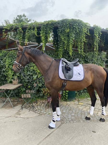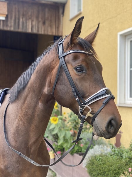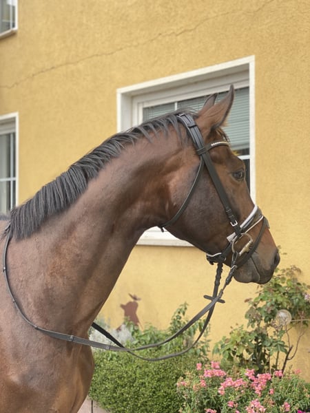 **Sales Advertisement: German Sport Horse** For sale is an impressive German Sport Horse gelding from the year 2020. With a height of approximately 175 cm and his elegant brown coloring, he attracts all attention. This talented gelding is particularly suitable for dressage and already shows promising approaches in his training. His movements are smooth, expressive, and energetic, making him a promising partner for ambitious riders. He is well-mannered, well-educated, and always calm. He consistently demonstrates a high willingness to perform and joy in his work. He is not spooky and very well-behaved in handling. A clean radiographic examination with 18 images is available. If you are interested or need further information, please feel free to contact me. 017634157623