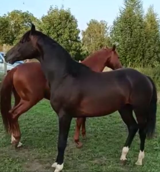 Dieser ausdrucksstarke Hengst von Escamillo x Quaterback verfügt über hervorragende Bewegungen. Er war noch nie krank oder verletzt. Er hat einen tollen Charakter und ist sehr gelehrig. Der Vollbruder der Mutter ist gekört, war bereits 6-jährig M-siegreich und geht erfolgreich Grand Prix. Sein Bruder von Escolar ist S-Dressur und M-Springen erfolgreich. Escamillo war Prämienhengst seiner Körung 2017 in Verden, legte 2018 seinen 14-Tage-Test mit der Dressurnote 9,08 ab und absolvierte 2020 seinen Sporttest unter Helen Langehanenberg mit der Siegerbewertung von 9,36. Unter der Olympia-Teamzweiten qualifizierte er sich auch fünfjährig mit einer 9,5 für die Dressurpferde-Bundeschampionate. Züchterisch gehört Escamillo schon jetzt zu den erfolgreichsten Beschälern. Quaterback, selbst Bundeschampion (Note 10,0 auf den außergewöhnlichen Trab). Der zuletzt auf Platz vier der weltbesten Dressurvererber rangierende Elitehengst stammte aus der Neustädter P-Familie und sammelte nach seinem überragenden Sieg auf dem Bundeschampionat 2006 wiederholt Titel in Dressuren bis zur schweren Klasse. Weltweite Maßstäbe setzte Quaterback allerdings nicht im aktiven Sport, sondern in der Zucht. So lieferte der Quaterman-Sohn zahlreiche gekörte Hengste sowie im Grand Prix-Sport erfolgreiche Nachkommen.