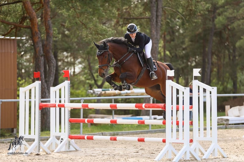 Manni wurde 2019 geboren und bereits als Fohlen von mir gekauft. Er ist bei uns im Stall aufgwachsen und wurde ab dem 4. Lebensjahr schonend angeritten. Er hat ein Stockmaß von 1,72m. Manni konnte bisher Siege bis 1,10m (L) sowie Platzierungen bis 1,30m (M**) erreichen, vorgestellt sowohl von mir als auch einer Amazone, beide Amateurreiter. Manni überzeugt durch: -Sehr gute Rittigkeit und Leistungsbereitschaft -Grundehrliches Verhalten im Parcours – keine Verweigerungen, auch bei schwierigen Distanzen -Motivation im täglichen Training – sowohl alleine als auch in der Gruppe geländesicher -Schmiede- und Verladefromm Trotz seines jungen Alters eignet sich Manni ideal als Amateur- oder Jugendpferd. Er hat bereits viel Turniererfahrung sammeln können und hierbei dem Reiter am Sprung immer Sicherheit vermittelt. Manni ist ein Pferd zum sofort durchstarten im Bereich A, L, M und wird bei entsprechender Förderung in der Turniersaison 2026 seine ersten Youngster-Springen in der schweren Klasse absolvieren. Auch ein Einsatz im Hunter-Bereich wäre bei entsprechender Vermarktung denkbar. Bei Interesse gerne mit Telefonnummer melden, ich sende Videos und weitere Infos.