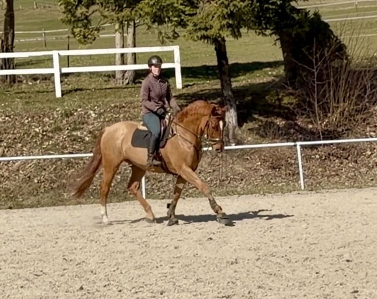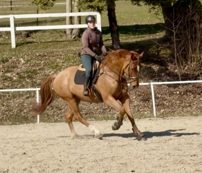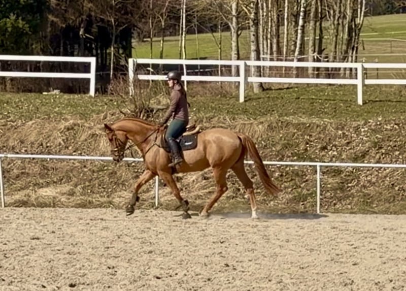 Con Moto is a well-muscled 6-year-old chestnut gelding sired by Colman. Standing at 17.1 hh and correctly built, this gelding impresses not only with his appearance but also with his motivation and willingness to perform. Con Moto has been gently backed and trained. This horse is an excellent all-rounder, suitable for jumping, dressage, or simply relaxed leisure riding. He is a loyal and dependable companion. Con Moto is naturally healthy and has front shoes. Further information and videos are available via WhatsApp or by phone at: +43 660 3632373 Location: Pelmberg 15 / Upper Austria Viewing and test riding are available by appointment! Transport of the horse can be arranged upon request.