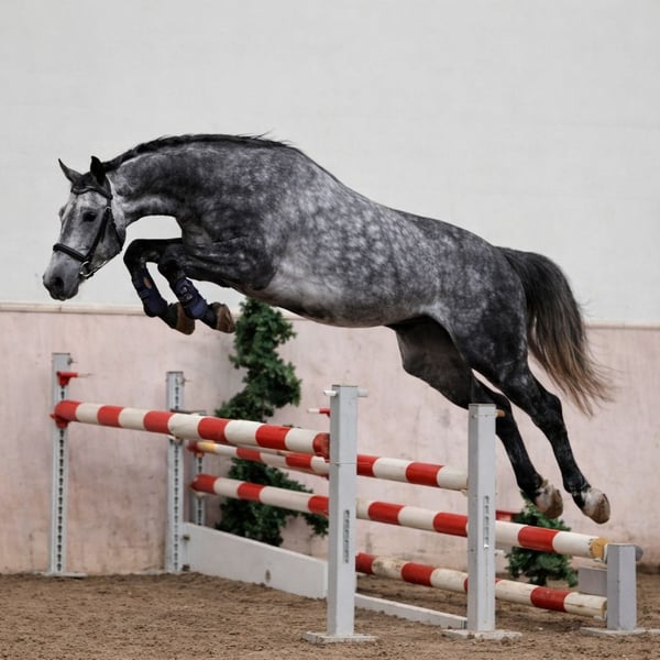 Merlin – 6-Year-Old Sport Horse with Potential (German Sport Horse / Sport Horse Type) Height: 1.48 m Our friendly gelding Merlin, 6 years old, is looking for a nurturing and loving new home. From a young age, Merlin demonstrated great talent and awareness in free jumping. He has also gained initial experience under saddle in jumping. Since our focus has mainly been on dressage, this talent has not yet been specifically developed — meaning there is significant potential for someone interested in further training him in this discipline. Merlin is an open-minded gelding familiar with daily handling and well-behaved in the stable. He is accustomed to both riding on the arena and in the field, where he shows curiosity. He is uncomplicated in everyday life: - Farrier visits are trouble-free - Loading is reliable — he happily steps into the trailer with a bowl of muesli - He knows normal stable routines and interacts well with people Due to herd reduction and lack of time, we are seeking a new home for Merlin where he can continue to be supported and where his strengths can flourish. IMPORTANT: Since he is not a horse ready for immediate riding, he is ideal for someone who values working together and wants to grow with him. Due to our limited time, as we have multiple horses and foals, he has not been extensively trained so far. Interested parties should be aware that he is still somewhat unsure when bridling (he sometimes pulls back during the process; he has no problem with the bit but doesn’t like it being pulled over his ears, which requires further practice). It should also be understood that he needs additional training in balance and dressage work. If you are looking for a horse with whom you can work and develop further, Merlin could be the right partner. Our priorities: Place over price. No dealers and no timid riders — Merlin is a young horse and requires a confident, fair handler and further training. Since we cannot give him the time he needs, he has not been in consistent work recently and would need to return to training. More details can be provided upon serious interest, and he is being offered well below value for this reason. If you are looking for a friendly, talented partner for the future, we look forward to hearing from you. Viewing appointment: €25.