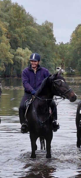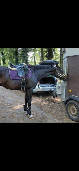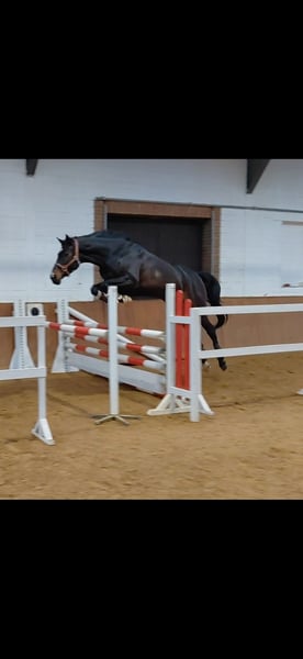 Caracas ist bisher nur wenig im Sport gefördert, 3j war er beim Freispringchampionat in Moritzburg plaziert, nachdem er kurz angeritten wurde stand er beim Züchter die meiste Zeit auf der Wiese, er ist super artig im Gelände und hat auch schonmal an einem Ausritt mit einer Hundemeute teilgenommen, das hat er sehr artig gemacht deshalb könnte es sein, das er sich auch als Jagdpferd eignet, er ist super unkompliziert im Umgang und immer entspannt und verschmust, er hat schonmal kleine bunte Sprünge und Baumstämme mit Reiter gesprungen wurde da aber bisher nicht weiter gefördert, er ist dementsprechend KEIN Anfängerpferd, ich würde ihn als angeritten bezeichnen wobei er jetzt regelmäßig in der Halle oder auf dem Platz oder im Gelände geritten wird, auch Anhänger fahren ist für ihn kein Problem, Schmied und TA ebenfalls nicht, z.Zt. ist er eben ein Freizeitpferd mit mega Springvermögen was bisher unter dem Reiter nicht entsprechend gefördert wurde, ein kleiner ungeschliffener Diamant sozusagen, gerne versende ich Videos und Röntgenbilder (12 Bilder obB aus 2025) per WA nach einem ersten Telefongespräch, bitte haben Sie Verständnis dafür, das reine Anfragen nach weiteren Bildern oder Videos nicht beantwortet werden, Caracas ist super verträglich mit anderen Pferden egal ob Wallache oder Stuten, Zähne und Osteo wurden im Herbst gemacht, Caracas ist regelmäßig beim Schmied,