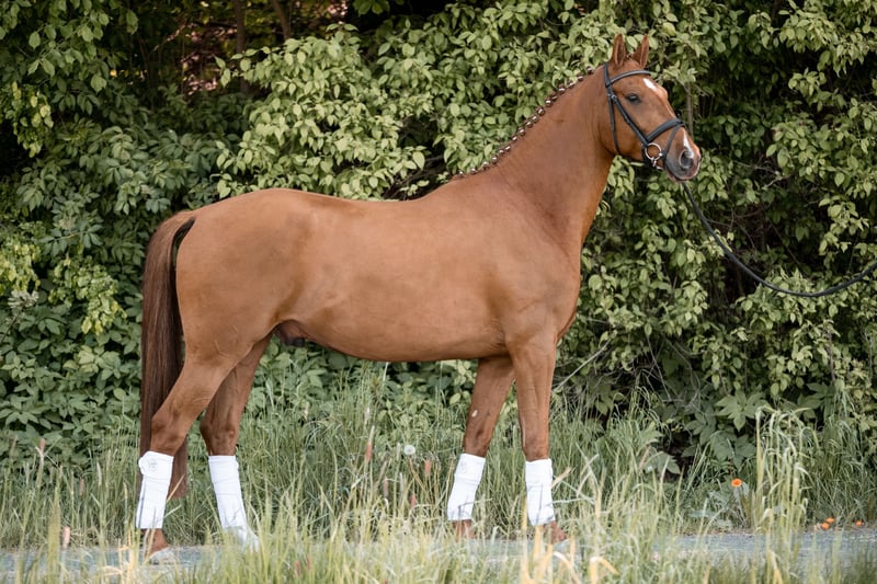 Zum Verkauf steht ein vielversprechender Deutscher Sportwallach, geboren im Jahr 2019. Der elegante Fuchs überzeugt durch sein beeindruckendes Stockmaß von 172 cm und seinen liebevollen Charakter. Er ist bestens für den Dressursport geeignet und zeigt bereits vielversprechende Ansätze in der Ausbildung. Mit seinem freundlichen Wesen und seiner zuverlässigen Art ist er ein idealer Partner für ambitionierte und erfahrene Reiter, die Wert auf ein gutes und stabiles Dressurpferd legen. Dieser talentierte Sportler verbindet Leistungsbereitschaft mit einem angenehmen Charakter und freut sich auf eine neue sportliche Herausforderung. Trotz seines lieben Wesens ist er kein Anfänger oder Kinderpferd.
