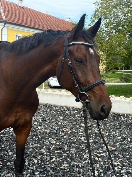 Gentle XXL Teddy with a height of 178 cm available for sale. This DSP gelding, of larger stature, impresses with his friendly attitude towards both humans and other animals. Character-wise, he is a soul with a heart in the right place. Most recently, he demonstrated his talent in the arena by winning the 2025 regional championship title against a large starter field. https://www.noeps.at/regionalmeistertitel-fuer-celine-schlager-und-emilia-klus/?fbclid=IwdGRzaANjURNjbGNrA2NRCGV4dG4DYWVtAjExAAEeIJBd0HOa33C4wAZGvdyKRWrXjyeEf-aqrL2zxjBSxDZjGGh2t4sPPte_p2E_aem_4OmL4y8qpCulhHCiEOWvAg&sfnsn=wa He is very well-behaved both alone and in groups on terrain. He is familiar with road traffic, farm machinery, and everything typical on a farm. Currently, he is undefeated, vaccinated, and compatible with other horses. X-rays available. Serious inquiries only via the following phone number: +43 650 5800229