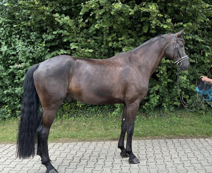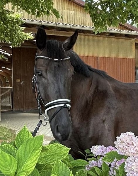 For sale is an impressive black-brown gelding, born in 2019. With a height of approximately 175 cm, he is a true eye-catcher and impresses with his elegant appearance. This talented gelding is well-suited for dressage and has demonstrated this at competitions. He has won in Dressage A and has been placed multiple times in Dressage L. His three very good basic gaits are rhythmical and expressive, making him an ideal partner for ambitious riders. He is absolutely well-behaved, well-mannered, and has a very friendly character. Whether in training or at competitions – he always shows his willingness to perform and his potential. He is being sold directly from the breeder with a heavy heart due to the need for breeding stock. If you are interested or have any further questions, please feel free to contact me.