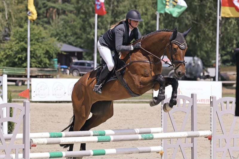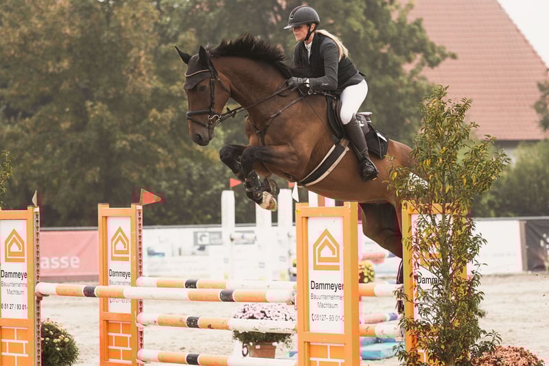 Ce jeune athlète possède toutes les qualités nécessaires pour le haut niveau. Kando a un potentiel presque illimité et une excellente attitude au saut. Il est très fin à monter, effectue des changements de pied au galop et reste toujours concentré au travail. Il a été monté pour la première fois en février 2024 et est maintenant en route vers la catégorie M**. Il se montre toujours brave, amical et attaché aux humains. Ses premières compétitions se sont caractérisées par son calme, sa résistance et sa prudence, ce qui lui a permis de se classer immédiatement. Il est désormais bien placé en saut d'obstacles L et a déjà réalisé plusieurs parcours sans faute en M*. Il est entraîné par une amateur et compense même une distance inappropriée avec assurance. Il aborde de nouvelles hauteurs sans être impressionné et avec beaucoup de confiance en lui. Dans son travail quotidien, il montre une grande joie et est toujours désireux de plaire. Un jeune cheval d'une qualité rare et d'un caractère fort ! Les radiographies sont sans anomalies.