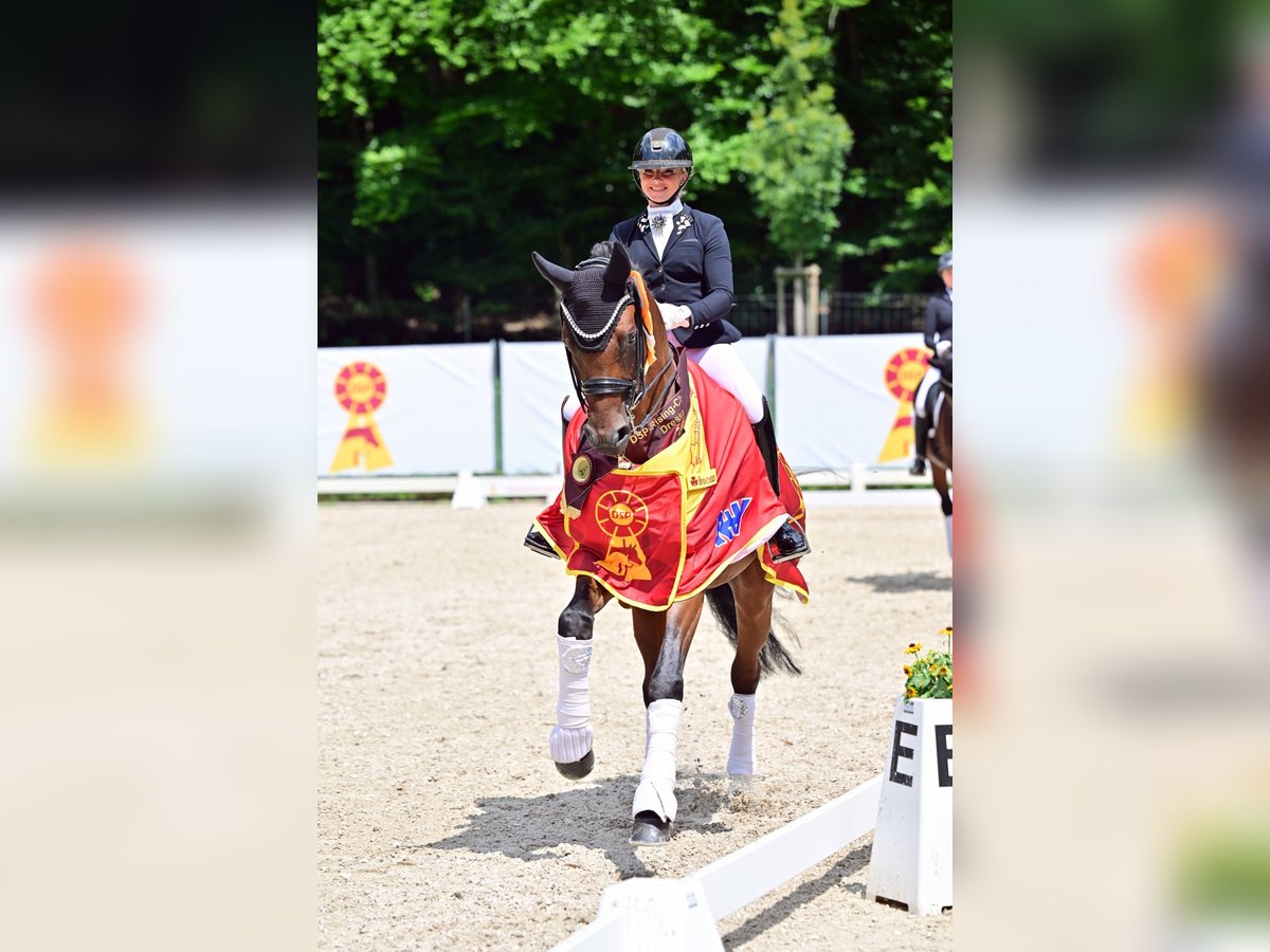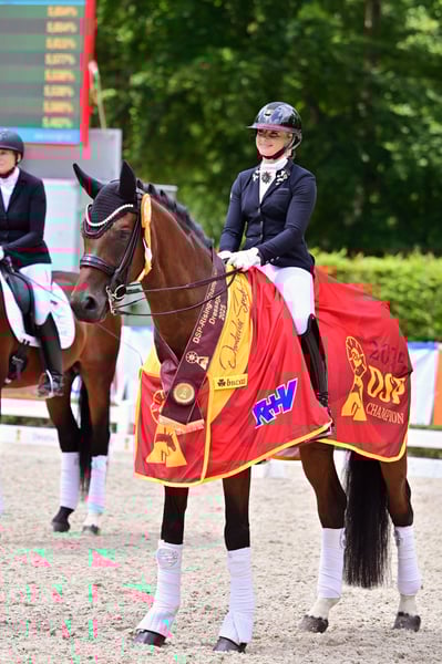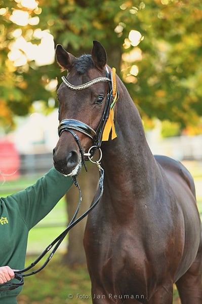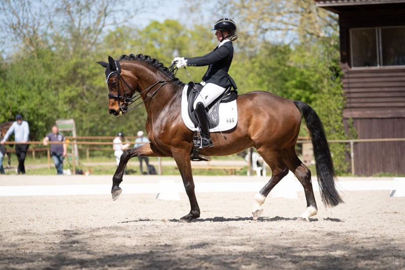 DSP Royal Heritage stammt von dem Rittigkeitsvererber Royal Doruto ab, welcher einer der letzten aus der weltberühmten Linie des Rubinstein ist. R- steht für Rittigkeit und genau dies verkörpert Royal Heritage. Er zeichnet sich durch seine Leistungsbereitschaft und seine menschenzugewandte Art aus, er möchte immer alles richtig machen und seinem Reiter gefallen. Auf Grund dieser Eigenschaften ist er auch für jüngere Reiter und auch schwächere oder ältere Reiter geeignet. Unter der Woche ist er ein absoluter Dressur-Krack und am Wochenende liebt er es bei Sonnenschein ausreiten zu gehen. Royal Heritage aka "Robbie" wurde 2020 gekört und in dem Alter von 4 Jahren kastriert um seine sportliche Karriere weiter zu fördern. In Jungpferdeprüfungen sehr erfolgreich, wechselte er 2024 in den Stall der erfolgreichen Reiterin Michele Schulmerig. Das Paar konnte letztes Jahr seinen größten Erfolg feiern und den DSP Titel in Darmstadt Kranichstein für sich entscheiden, hierdurch erlange er auch den Namenszusatz DSP und ist somit amtierender DSP Rising Champion in der schweren Klasse. Aktuell befindet sich Robbie auf dem Weg zur Klasse S** und zeigt bereits sehr schöne Ansätze von Piaffe und Passage. Ein internationaler Verkauf bzw. in das Ausland wäre ebenfalls möglich und kann durch die Besitzerin unterstützt werden. Videos auf Anfrage unter der 01742117400 DSP Royal Heritage is by the rideability sire Royal Doruto, one of the last from the world-famous Rubinstein line. The "R" stands for rideability, and Royal Heritage embodies exactly that. He is characterized by his willingness to perform and his people-oriented nature; he always wants to do everything right and please his rider. Because of these qualities, he is also suitable for younger, less experienced, or older riders. During the week, he is an absolute dressage star, and on weekends, he loves going for a ride in the sunshine. Royal Heritage, also known as "Robbie," was licensed in 2020 and gelded at the age of four to further his sporting career. Very successful in young horse classes, he moved to the stable of the successful rider Michele Schulmerig in 2024. The pair celebrated their greatest success last year, winning the DSP title in Darmstadt Kranichstein. This victory also earned Robbie the DSP designation, making him the reigning DSP Rising Champion in the advanced level. Robbie is currently working his way up to the S** level and is already showing very promising signs of piaffe and passage. An international shipping is also possible. Videos are available upon request at +49 174 2117400.