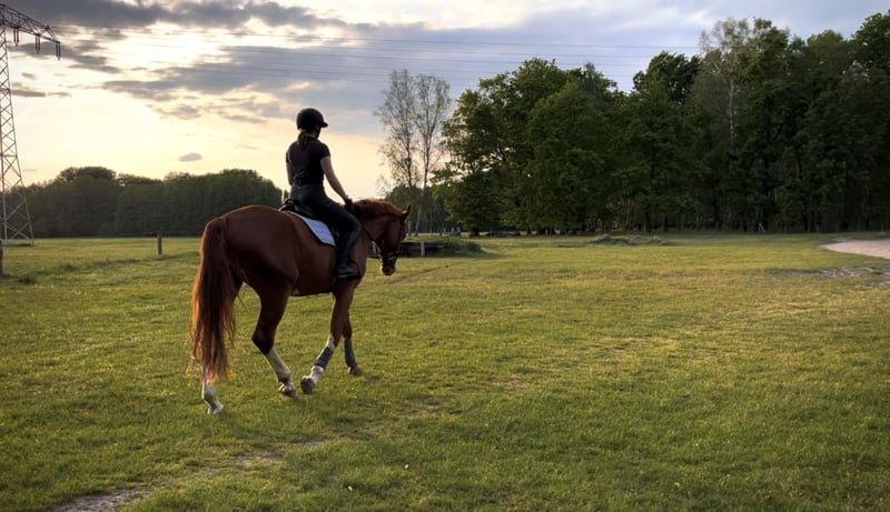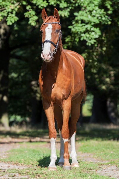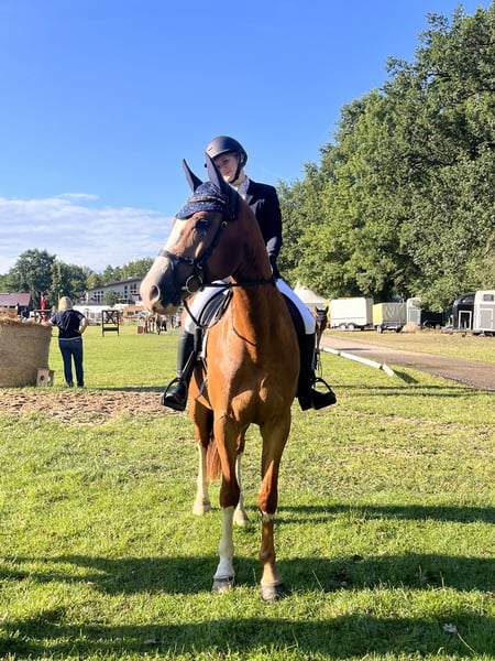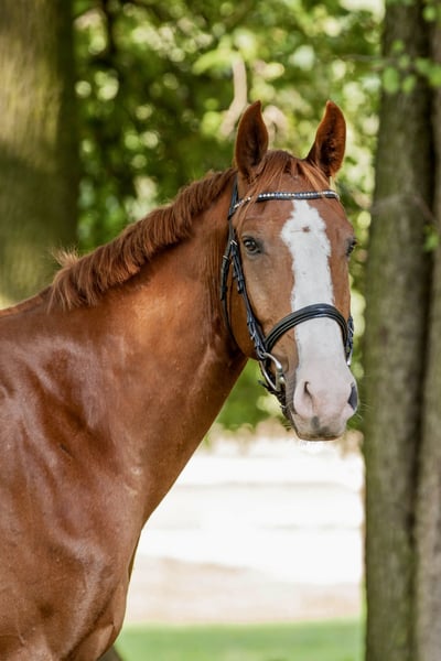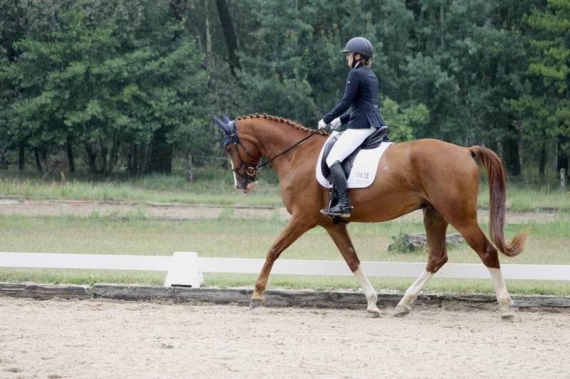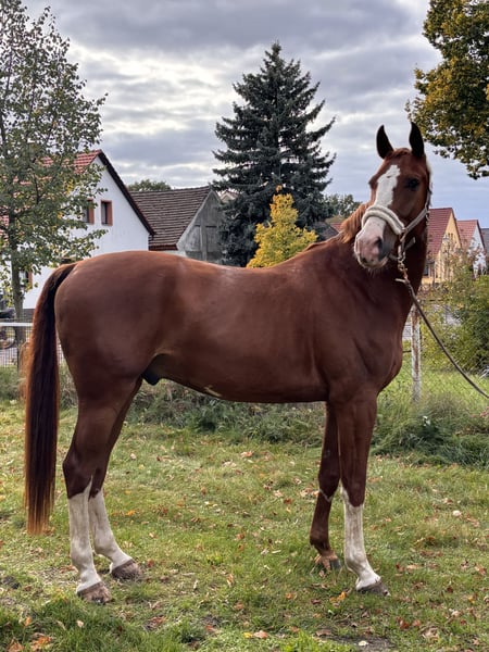 With a heavy heart, I am seeking a new home for my 7.5-year-old gelding, where he will continue to be supported and lovingly cared for. Standing approximately 175 cm (17.1 hh) and featuring a striking appearance as a beautiful chestnut with plenty of white markings, he is truly eye-catching. He is sired by Champion x Paulaner. He has been gently and horse-appropriately backed and has been trained in accordance with his age. His training is clearly focused on dressage – lateral movements and the standard dressage movements are no problem for him. He has been successfully competed at local dressage competitions up to level A. There is also some talent for jumping: when free-jumping, he shows motivation and ability, although his primary focus so far has been on dressage. His greatest highlight is his exceptionally kind and people-oriented personality: He is absolutely well-behaved and uncomplicated in handling, even in unfamiliar environments. At competitions and in new surroundings, he quickly becomes very relaxed and focused. Whether at the blacksmith, alone in the field, or during daily handling – he remains friendly and reliable at all times. He loves attention, closeness, and cuddling, and enjoys contact with his humans immensely. He is also social and easy-going with other horses, often playful. Despite his gentle nature, he is not suitable for absolute beginners but would thrive with an experienced rider who can provide him with security and enjoys supporting his ongoing development. He receives regular physiotherapy and is always carefully cared for. A veterinary health check (AKU) can of course be arranged. - Location: Cottbus - Equipment can be included upon request We are looking for a home where he will be accompanied with time, heart, and appreciation. This is not a rushed sale. If you are genuinely interested, we look forward to hearing from you.