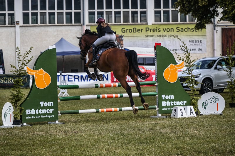 Zum Verkauf steht ein bildschöner 8-jähriger Wallach. Prinz Albert ist ein Deutsches Sportpferd abstammend von Prinz Ludwig x Glacier. Er hat ein Stockmaß von ca. 177cm. Er ist A**-Springen platziert und L-fertig. Er ist Schmiede- und Verladefromm, geimpft und die Zähne wurden regelmäßig kontrolliert. Er wurde mehrmals bei der Osteopathin und beim Sattler vorgestellt. TÜV ohne Befund von Oktober 2024 ist vorhanden und kann natürlich auf Wunsch zugesendet werden. In der täglichen Arbeit ist er neugierig und sehr brav. Joggen an der Hand, Kühe, Schafe, Hunde und klappernde Fahrzeuge wie z.B. Traktoren kennt er und hat damit keine Probleme. Er ist in der dressurmäßigen Arbeit gut zu reiten und beherrscht A-Lektionen, sowie einige L-Lektionen. Er kennt die Longe und wurde von uns langsam an die Doppellonge herangeführt (braucht da noch etwas Übung). Beim Springen ist er mit genügend Go ausgestattet und ist von fortgeschrittenen Reitern problemlos zu reiten. Er ist nicht guckig und springt jegliche Unterbauten inklusive Wassergraben ohne Probleme. Auf dem Turnier und beim Auswärtstraining zeigt er sich, wie sonst auch arbeitswillig. Er lässt sich mit anderen Pferden und auch allein problemlos verladen. Wir waren mit ihm sehr oft in einer Gruppe und auch allein im Gelände, dort erweist er sich als absolutes Verlasspferd, auch unter einem unerfahreneren Reiter. Deswegen könnte ich ihn mir auch sehr gut als zuverlässigen Partner für den gehobenen Freitzeitreiter vorstellen. Prinz ist gut sozialisiert. Er versteht sich sowohl mit Wallachen als auch mit Stuten und fährt auch mit fremden Pferden sehr entspannt Hänger. Er steht bei uns aktuell im Offenstall, kennt aber auch die Boxenhaltung. Aufgrund einer Verletzung meinerseits wurde er dieses Jahr leider kaum auf Turnier vorgestellt. Gesprungen wurde er in den letzten Monaten von einer Bekannten. Aktuelle Videos aus dem Training stelle ich Ihnen auf Anfrage gern zur Verfügung. Er wird inklusive Trense (nicht mal ganz ein Jahr alt) verkauft. Sie haben Interesse? Dann können wir gern einen Termin zum Probereiten vereinbaren. Melden Sie sich gern per WhatsApp oder Anruf unter 0157 85922936.