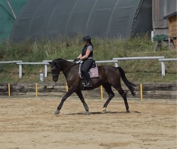 This 9-year-old DSP gelding (born 2016, height 16.1 hh, black) impresses with three expressive basic gaits and an honest character. He brings joy every day – whether in the arena, on trail rides, or at competitions. Sired by Hochmeister x Jazzman. In dressage, he is solidly trained up to A-level and already familiar with some L-level exercises. In show jumping, he has been competed at a solid E-level and also demonstrates talent in this discipline. Competition experience (WBO) is available. The gelding is completely healthy, well-behaved in daily handling and under saddle. He loads easily and is uncomplicated with the farrier and veterinarian. Regularly vaccinated and dewormed. Please feel free to contact us with any questions! Phone: 0173 2012706 Location: Reichenbach, 08468 Viewing and test rides are available by appointment at any time.