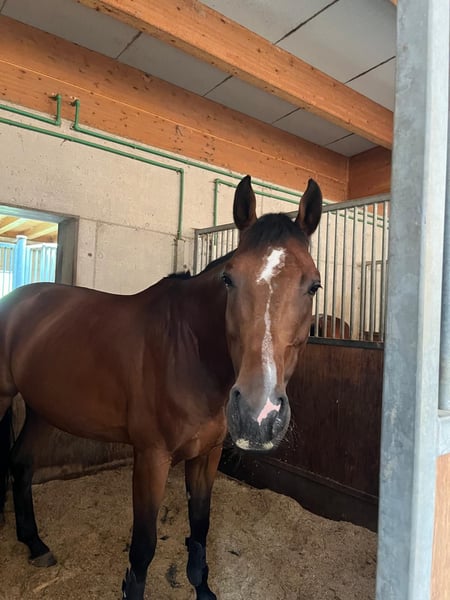 Dieser jetzt 9- jährige Wallach soll aus gesundheitlichen Gründen in sehr gute fördernde Hände gegeben werden.. "Levi" hat sich in den letzten Monaten so gut bei mir weiterentwickelt, dass ich ihm , durch mein gebrochenes Bein, leider nicht mehr gerecht werden kann. Er verfügt über drei gute GGA, wobei sein Schritt und auch die weiche Galoppade hervorzuheben sind. Sein menschenbezogener Charakter macht ihn zu einem wunderbaren Familienpferd. Durch seine solide dressurmäßige Ausbildung ist "Levi" im Parcours gut händelbar und macht richtig Spaß, dabei ist er vorsichtig genug am Sprung. Ich könnte mir einen Umsteiger für dieses Pferd gut vorstellen, genauso wie einen ambitionierten jungen Turnierreiter. Sein ausgeglichenes und ruhiges Wesen machen ihn auch im Gelände zu einem guten Partner. Ich spreche Deutsch + Englisch. Kontakt gerne unter: fboehmtempele@gmail.com Ich freue mich auf Nachrichten von Euch.