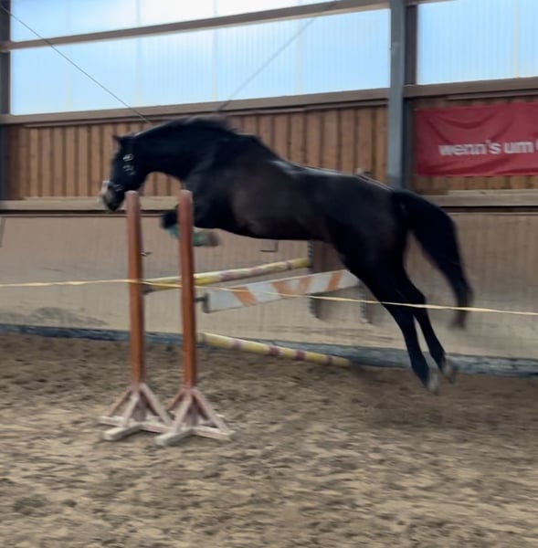 Eleganter Deutscher Sportpferd-Wallach, geb. 2017, sucht neue Herausforderungen Dieser beeindruckende Dunkelbraune Wallach vereint Kraft, Eleganz und Vielseitigkeit. Mit einem Stockmaß von 173 cm bietet er die ideale Größe für ambitionierte Reiter, die Wert auf Qualität und Leistungsbereitschaft legen. Geboren im Jahr 2017, ist er bereits gut ausgebildet und zeigt sich im Springen äußerst talentiert. Als ehemaliges Vize-Championatsfohlen (Sachsen 2017) bringt er die idealen Voraussetzungen für den gehobenen Reitsport oder als anspruchsvoller Freizeitpartner mit. Sein ausgeprägtes Springvermögen, kombiniert mit einem zuverlässigen und gut gerittenen Charakter, machen ihn zu einem idealen Partner für den Turniersport oder den ambitionierten Freizeitreiter. Der Wallach überzeugt durch seine solide Grundausbildung, seine springstarken Fähigkeiten und seine Bereitschaft, stets sein Bestes zu geben. Er ist gesund, regelmäßig kontrolliert und zeigt sich im Umgang äußerst freundlich und kooperativ. Dank seiner guten Abstammung und seines ausgeprägten Tempos ist er bestens für den Sport geeignet und bringt die nötige Motivation für anspruchsvolle Aufgaben mit. Ein Pferd, das sowohl durch seine Leistungsbereitschaft als auch durch sein angenehmes Wesen besticht – perfekt für Reiter, die ein zuverlässiges und talentiertes Springpferd suchen. Er steht aktuell nicht im Training und wurde zuletzt im Sommer 2025 über Bodenarbeit im Muskelaufbau trainiert. Und bietet somit die perfekte Basis um ihn in Training zu formen. Für weitere Informationen,Videos oder einen persönlichen Eindruck stehe ich gerne zur Verfügung.