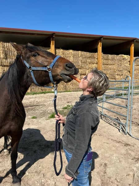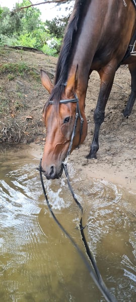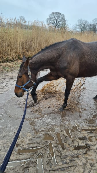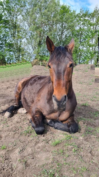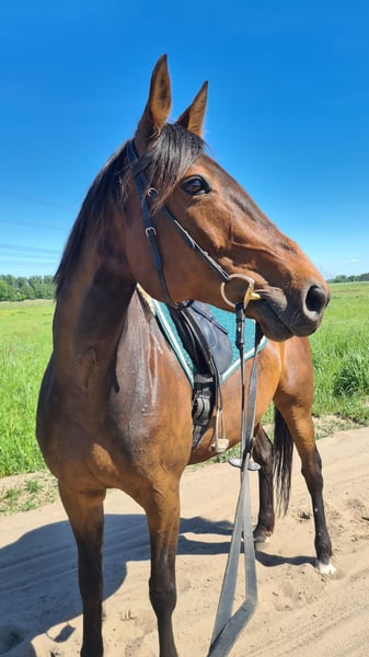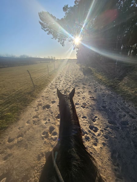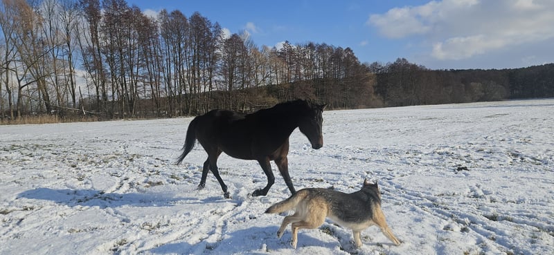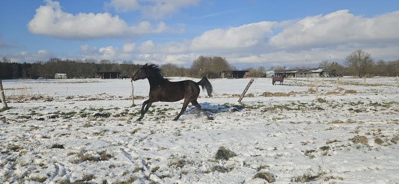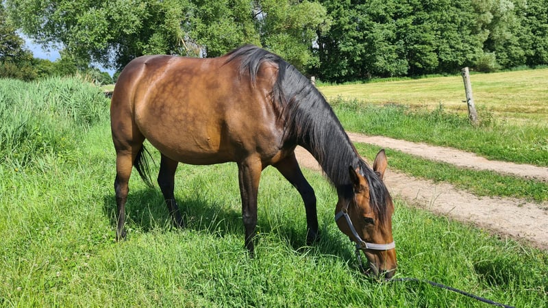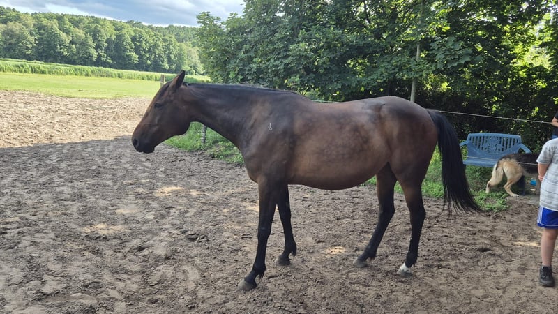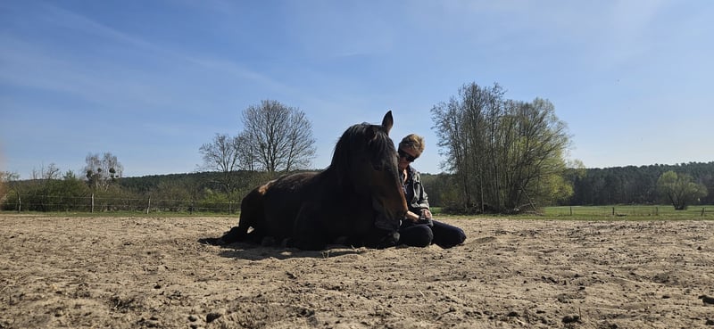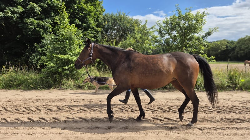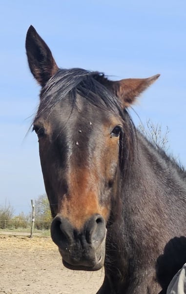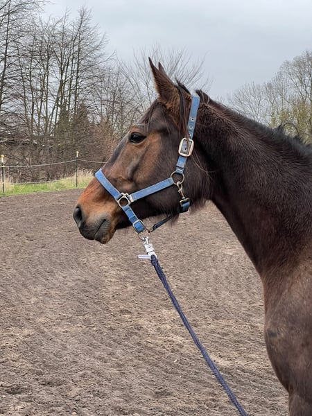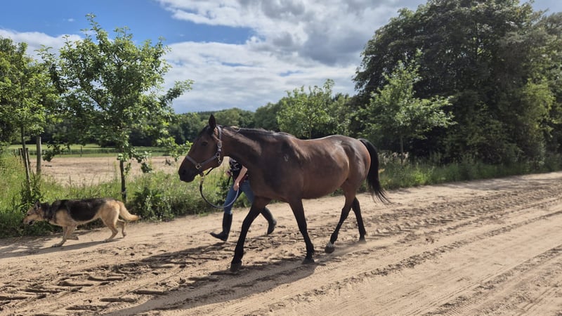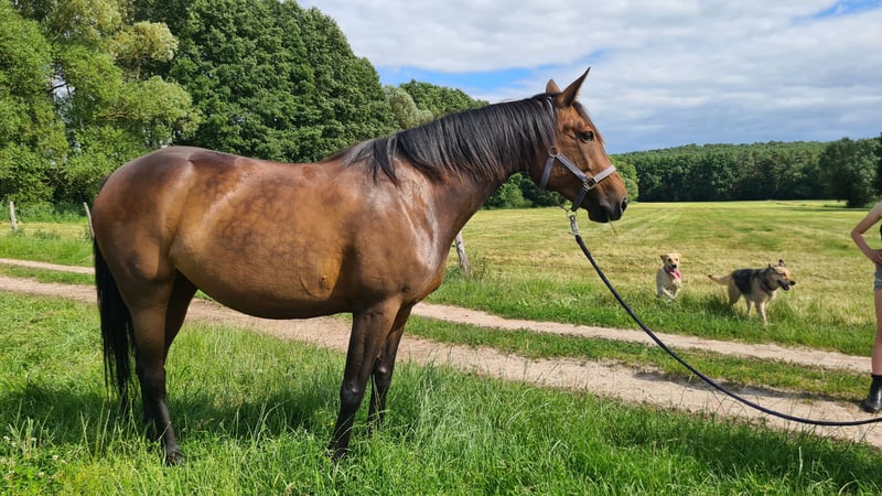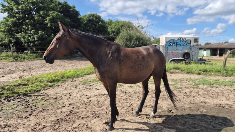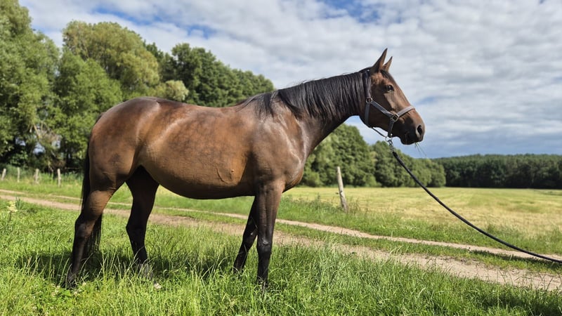 11-jährige Traberstute sucht neues Zuhause. Moana hat ein absolutes Herz aus Gold, versucht stets alles richtig zu machen und ist sehr sensibel. Besonders in der Bodenarbeit – ob Freiarbeit, Longieren, Stangenarbeit oder einfach Spazieren – ist sie sehr fein, aufmerksam und lernfreudig, genau wie beim Reiten auf dem Platz, und reagiert auf die feinsten Hilfen. Sie war drei Monate bei Bettina Bunne, Intuition Pferd, in der Ausbildung. Moana ist 1,56 m groß, seit ca 4 Jahren aus dem Rennen und seitdem Freizeitpferd im Offenstall. Leider muss ich mir nach drei Jahren eingestehen, dass wir nicht zueinander passen. Denn ich liebe es, im Gelände schnelle und lange Ausritte zu machen, während dies das Einzige ist, was sie nicht mag. Sie ist im Gelände sehr gestresst. Deutlich entspannter geht sie in der Gruppe raus – leider ist das bei uns selten möglich. Mit Geduld und Zeit ist es möglich, sich Strecken zu erarbeiten, die sie dann auch in Ruhe geritten werden kann, aber das ist nicht meine Vorstellung vom Ausreiten. Wenn man unbekannte Wege reitet oder sie einfach mal „laufen lässt“, ist sie zwar zu halten, jedoch ist sie dann sehr gestresst, hibbelig und schreckhaft. In der Herde ist sie mittel- bis hochrangig, sehr verträglich und sozial. Beim Tierarzt – impfen, Wurmkur… - Hufschmied, Verladen gibt es keine Probleme. Sie steht ca 30 km südlich von Berlin