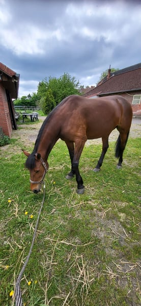 Hiermit verkaufe ich meine Liebe und ehrliche Traber Stute Dajana zum weiterausbilden als Freizeitpferd oder als Beisteller da sie wirklich sehr sozial ist. Ich habe sie Ende Oktober 2021 direkt vom Züchter gekauft. Sie ist dort ein paar Rennen gelaufen. Da ihr der Galopp mehr Spaß bereitet hat wurde sie als Freizeitpferd verkauft. Dajana ist sehr sozial, neugierig, aufmerksam, lernwillig und klar im Kopf. Sie ist aber auch sensibel und vorsichtig. Dajana hat einen tollen Charakter. Dajana kennt Boxenhaltung sowie Offenstallhaltung. Vor ca 3 Jahren hatte sie eine Hufgelenkentzündung die komplett ausgeheilt ist. Dajana ist vorne beschlagen. Ich wünsche mir für sie ein tolles neues zu Hause wo sie geschätzt und geliebt wird. Dajana wurde schonend angeritten im Schritt und Trab was sie ganz lieb mitgemacht hat. Der Galopp wurde unterm reiter nicht weiter gefördert. Seit einem Jahr wurde mit ihr nicht viel gearbeitet...nur putzen, betüddeln und spazieren gehen. Es saß auch keiner mehr drauf. Dajana wird nicht an Händler und Schulbetriebe verkauft. Eine Aku kann auf Wunsch und auf eigene Kosten selbstverständlich durchgeführt werden. Bei ernsthafte Interesse könnt ihr euch gerne melden. Zum Verkauf steht Dajana, weil sich meine Lebensumstände geändert haben.