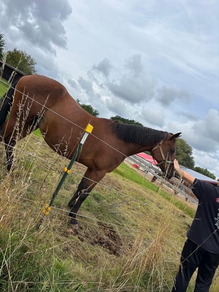 Schweren Herzens suchen wir für unsere hübsche Traberstute ein neues Zuhause. Sie ist 12 Jahre alt und hat ein Stockmaß von ca. 1,61 m. Wir haben sie erst Ende Oktober 2024 übernommen, müssen uns jedoch aufgrund von Zeitmangel durch Familienzuwachs leider wieder von ihr trennen. Unsere Stute ist eine feine, sensible Pferdedame, die einen erfahrenen und konsequenten Menschen an ihrer Seite braucht – jemanden, der ihr Sicherheit gibt, aber auch liebevoll mit ihr umgeht. Vor unserer Zeit hatte sie über zwei Jahre eine Reitbeteiligung, die sehr gut mit ihr harmoniert hat. Bei uns wurde sie aktuell nicht geritten. Vater : Love You (FR) Erfolgreich im Trab Rennsport ! Zubehör kann auf Wunsch gerne mit erworben werden (z. B. Decken, Halfter, Sattel, Longe, Futterschalen usw.). Wenn du dir vorstellen kannst, ihr ein schönes neues Zuhause zu geben, freuen wir uns sehr über deine Nachricht! Platz vor Preis❤️