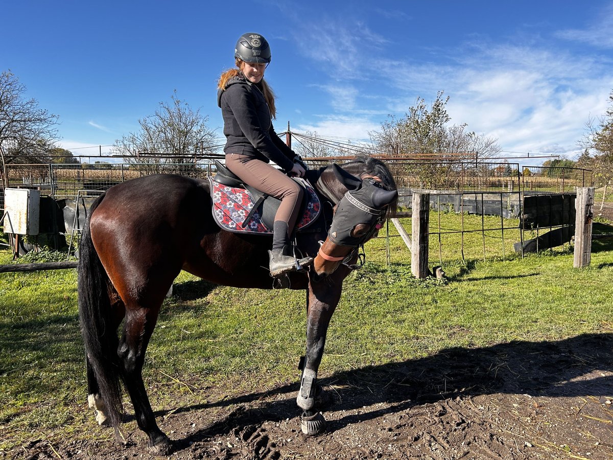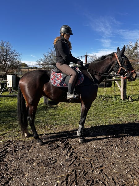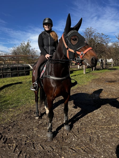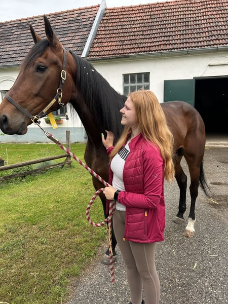 Ich suche für meine braune Traberstute La Princesa , liebevoll Prinzessin genannt, (geb. 2020, v. The Bank a. d. Clumsy Lazy Louse) ein neues, liebevolles Zuhause als Freizeitpferd oder Zuchtstute. Prinzessin ist eine sehr menschenbezogene, verschmuste und ehrliche Stute mit ruhigem Charakter. Mutig, unerschrocken und stets bemüht alles richtig zu machen. Sehr lernwillig und aufmerksam. Aber ich weis das sie als Mutterstute oder Freizeit Pferd sehr aufgehen würde. In den letzten zwei Jahren war sie aktiv im Renntraining, wir haben jedoch entschieden, dass die Rennbahn nicht ihre langfristige Aufgabe ist. In dieser Zeit ging sie viel im Wagen ins Gelände, mittlerweile tut sie das auch unterm Sattel. Ich bin sie ungefähr 10 Mal geritten, dabei ging sie schon alleine oder in der Gruppe ins Gelände. Sie hat sehr ruhige Gangarten und ist auch schon unterm Sattel galoppiert. Im Umgang ist sie unkompliziert, eher etwas Rang hoch auf der Koppel. Wir wünschen uns für sie einen Platz, an dem sie weiter gefördert wird und als Freizeit- oder Mutterstute ihr Potenzial entfalten darf.