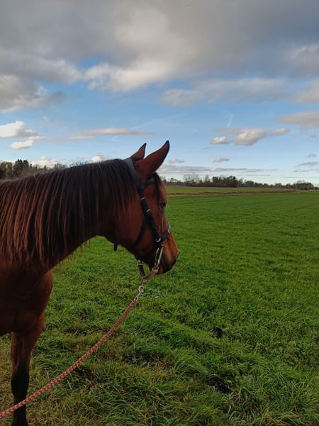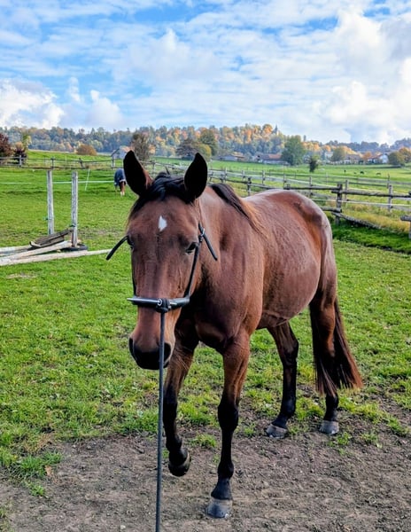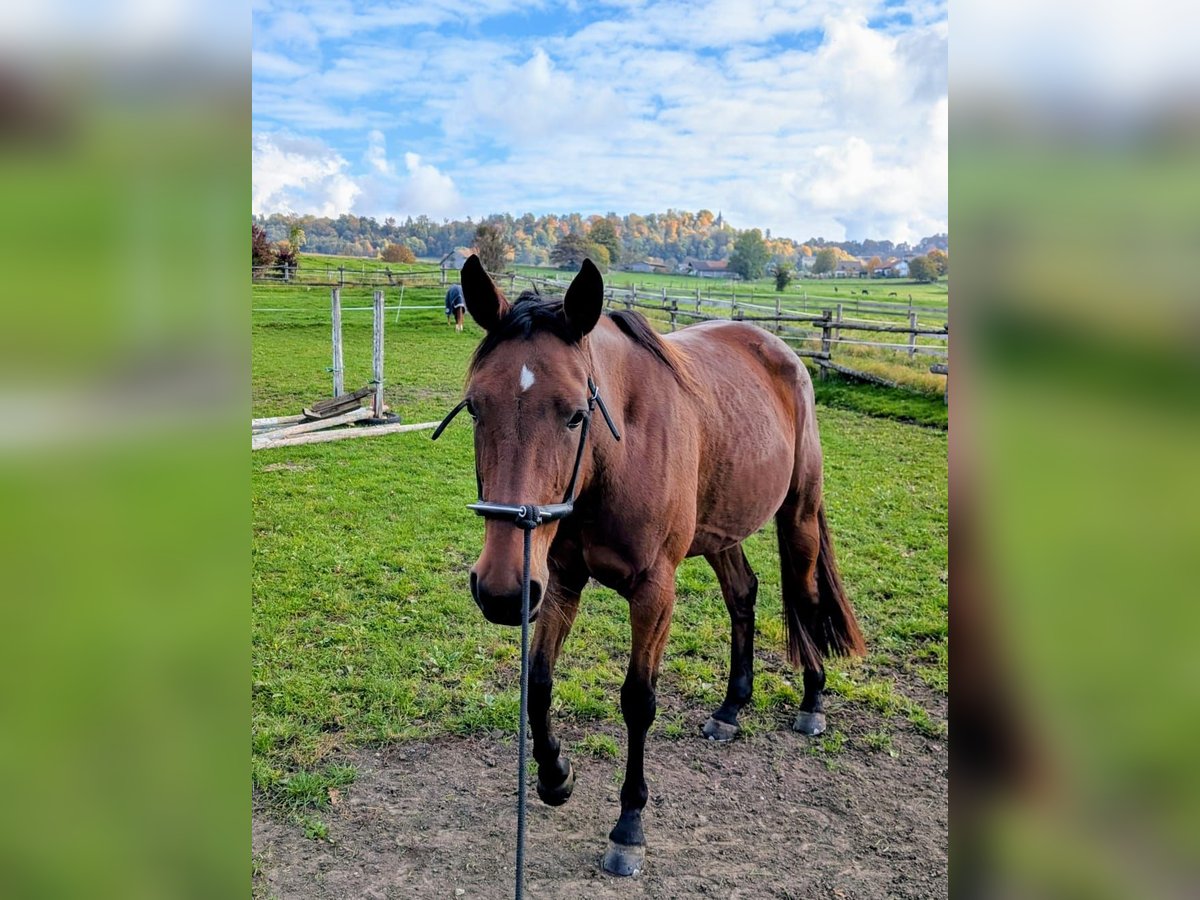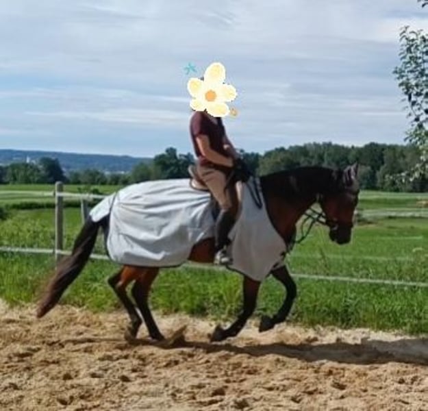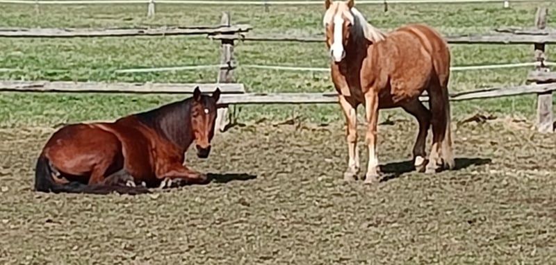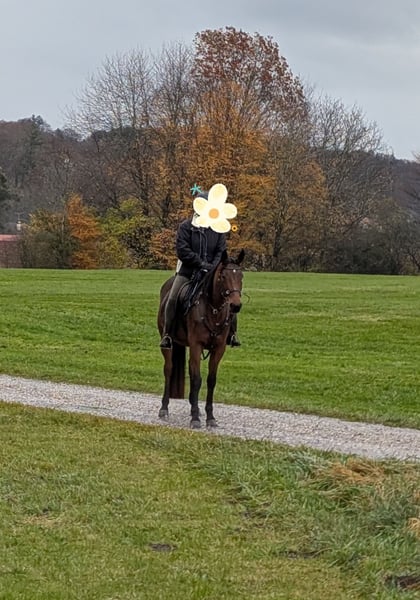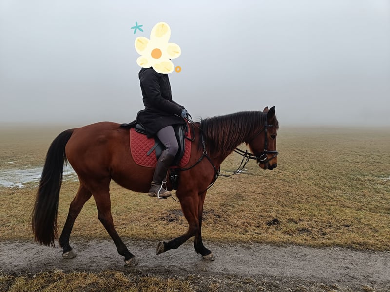 Biete 8 jährige, braune Traberstute als reitbares Beistellpferd zum Verkauf an. Ca 1,63m groß. Verkaufe sie vor allem aufgrund von familiärer Veränderung. Sie steht derzeit im Offenstall in einer 5köpfigen Stutenherde und ist eher rangniedrig. Sie kennt aber auch Boxenstall mit Koppelgang. Wichtig zu wissen ist, dass sie nicht gerne alleine ist. Stall, Ausritt, Hängerfahren. Wobei Hängerfahren und Einsteigen für sie gar kein Problem ist. Sie geht sehr gut an der Longe, auch im Galopp, ohne Ausbinder, und an der Doppellonge. Bei der Bodenarbeit ist sie auch sehr engagiert. Beim Schmied, Kaltbeschlag, ist sie sehr brav und beim Tierarzt sehr anständig. Mira ist unerschrocken bei Maschinen fast aller Art aber Regenschirme und Kinderwägen mag sie nicht so. Auch Geräusche, die sie nicht zuordnen kann bringen sie manchmal aus dem Konzept. Galopp mit Reiter auf der geraden und gebogenen Linie hat sie inzwischen gelernt. Ich betone ausdrücklich, dass ich sie als Beistellpferd verkaufe. Wer sie auch reiten will muss Erfahrung haben, besonders mit sensiblen Pferden und Pferden, die noch viel lernen müssen. Ich persönlich habe lange Jahre Reiterfahrung komme aber jetzt ohne die Unterstützung meiner Tochter nicht mehr mit ihr zurecht. Ich habe mir die Entscheidung sehr schwer gemacht weil sie wirklich ein liebes, freundliches Pferd ist, dem Menschen sehr zugewandt. Weitere Informationen dann persönlich.