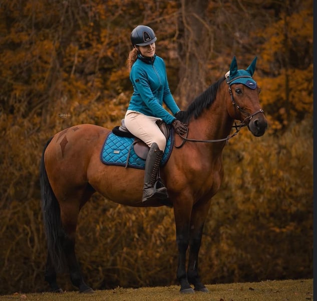 Woody ist ein hübscher 15-jähriger Vollblutaraber-Ruiner. Er ist sehr lernwillig, besitzt viel Potenzial, ist nicht träge, läuft aber fein an der Hand. Er kann sowohl springen als auch mit ihm durch den Wald, Wasser, an den Strand – was immer man möchte. Woody hat allerdings ein kleines Rückenproblem. Er mag das Anbinden nicht immer gern, unter dem Sattel buckelt und steigt jedoch nicht! Gelegentlich steckt Woody seine Zunge seitlich heraus, was laut Tierarzt keine Beschwerden verursacht. Du kannst mit ihm auch Turniere reiten, ich bin da ganz entspannt, solange eine gute Verbindung zwischen uns besteht. Ich bin frei in dem, was du mit ihm machst. Woody findet die Galoppade manchmal schwierig, früher ist er auch auf dem Turnierplatz gelaufen. Wir sind jetzt seit 3,5 Jahren zusammen, haben viel erlebt und einige Turniere gemeinsam bestritten. Er ist sehr umgänglich und brav. Was ich von dir erwarte: • Klare, gute Kommunikation • Auch bei schlechtem Wetter kommen • Mit schwierigen, schnellen Pferden umgehen können – er bleibt ein Vollblut • Mindestens 17 Jahre alt sein (Die Stallarbeit muss nicht gemacht werden, das übernimmt die Stallmannschaft. Nur Heu für den Abend und die Futterkübel auffüllen.) Bei Interesse schick mir gerne eine Nachricht. Am liebsten Tamara & Woody