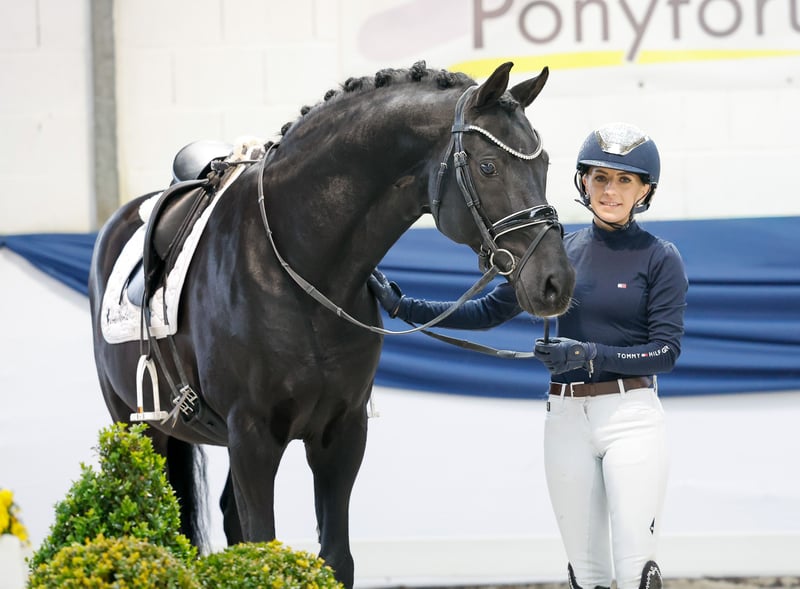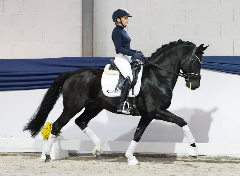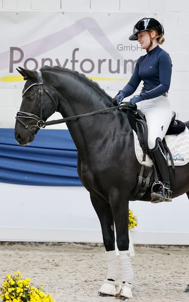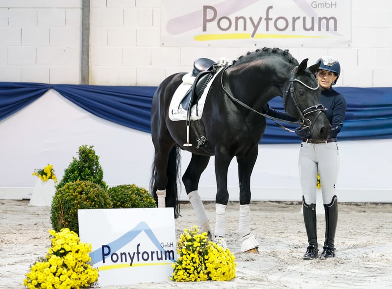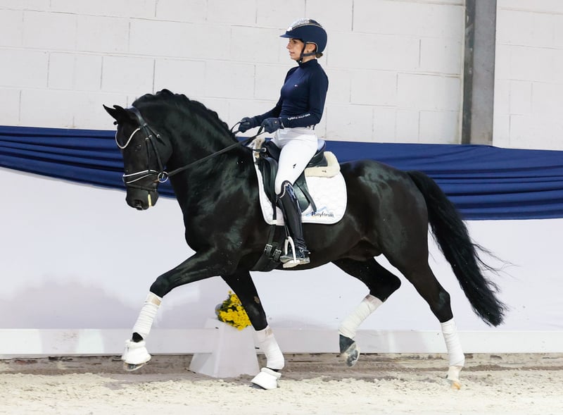 In onze collectie staan streng geselecteerde pony’s voor alle eisen: opleidings-, fok- en kinderpony’s. Hier vindt u de volledige collectie: https://ponyforum.auction Winnaar van meerdere dressuurwedstrijden in klasse L*, geplaatst in klasse L** dressuurwedstrijden, en geklasseerd in dressuurpaarden in klasse A en L. Siegerhengst-keuring Verden 2014. Een mooier uithangbord voor een ponycollectie is bijna niet denkbaar! Met de volwassen Dark Dornik staat een echte pony-ster in ons aanbod. De glanzzwarte hengst begon zijn carrière als winnaar van de Hannoversche ponykeuring in Verden en was lange tijd een vaste stamhengst bij de hengstenstation AT Schurf. Hij heeft bijna 200 nakomelingen, waarvan 9 zonen gekeurd zijn en 17 dochters met de staatsprijs zijn geëerd, waaronder de hannoversche kampioensmerrie Be my hope CVH. En ook onder het zadel weten zijn nakomelingen te imponeren – dat bewijst niet alleen ons collectiepony Darkness, een directe zoon van Dark Dornik. De nakomelingen van deze hengst zijn – zoals verwacht – het meest succesvol in de dressuur tot en met klasse M, waaronder zijn dochter Rosenhofs Mary Poppins, een internationaal succesvolle allroundpony (met overwinningen in springwedstrijden in klasse L en CCIP). Dark Dornik zelf behaalde zijn hengstenprestatie-test met groot succes, waarbij onder andere zijn rijvaardigheid met een 9,0 werd beoordeeld, en hij behaalde de status van “prestatiehengst” met zijn totaalcijfer. In de sport liet de elegante hengst zich altijd van zijn beste kant zien en behaalde hij meerdere overwinningen in dressuurwedstrijden in klasse L. Hij is een absolute gentleman in de omgang, gefocust tijdens het rijden en altijd bij de ruiter. Ponyfokkers prijzen nog steeds zijn optreden tijdens de Schurfsche hengstenkeuring 2024, toen hij met een nog onervaren jonge ruiter in het zadel zijn dressuurkwaliteiten liet zien – hij gaf het kleine ruitertje vol vertrouwen en samen straalden ze in het licht van de spotlights! Dark Dornik draagt de meest vooraanstaande dressuurgenen in zijn pedigree. Zijn vader Dornik B behoort tot de wereldtop in zowel eigen prestaties als die van zijn nakomelingen, en zijn moeder is onder andere een volle zus van de S-succesvolle Validos Highlight en anderen. Een unieke kans om een hengst te kopen die zowel foktechnisch als sportief zeer interessant en vooral succesvol is – naast zijn vele waardevolle successen en zijn uitstekende genetica is hij ook een bijzonder charmante en liefdevolle hengst.
