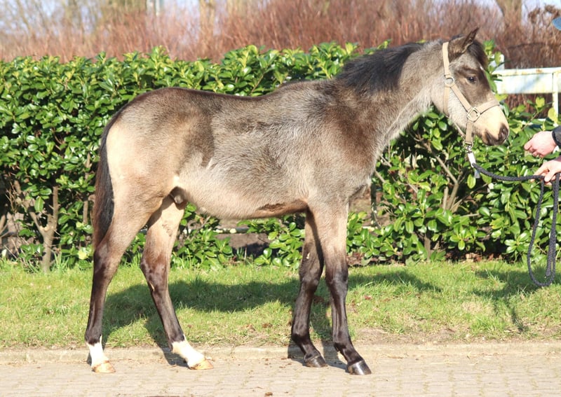 Sympathischer Ponyjährling von Golden State x Top Carello, mit guten Bewegungen und tollem Charakter. Preis zzgl. Mwst. Anfragen nur telefonisch, E-Mails werden nicht bearbeitet.