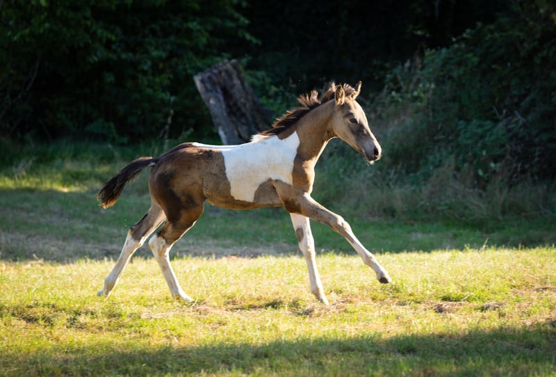 For sale is a German Riding Pony stallion in an exceptional buckskin pinto coat pattern. This beautiful stallion by Gold Garant NRW was born in June 2025 and received the silver medal at the foal inspection in Wickrath. Please feel free to contact me if you are interested or have any further questions.