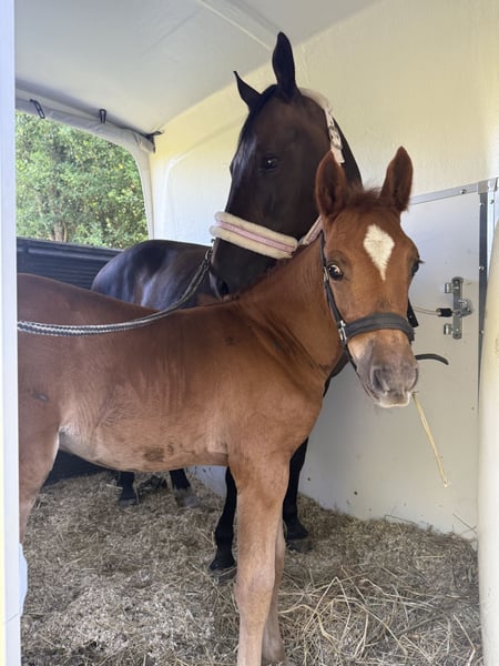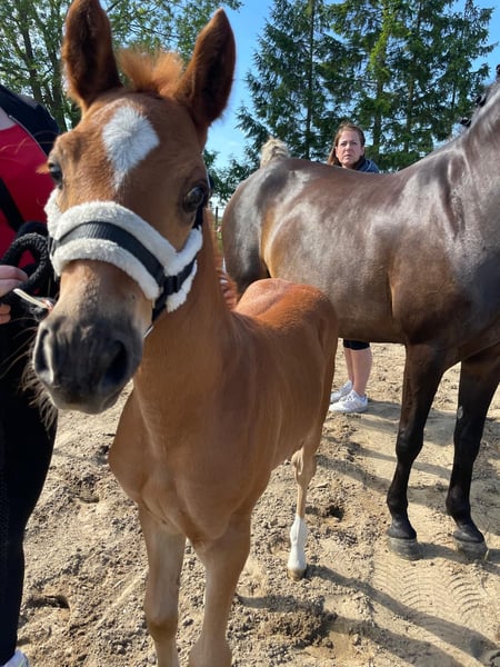 Destino‘s Don‘t worry be Happy, kurz um Happy Dieser wunderschöne, charmante, nervenstarke und Neugierde junge Mann in dunklere Fuchsjacke darf ab Dezember ausziehen und seine neuen Besitzer um den Finger wickeln. Er ist absolut Menschen bezogen und kennt alles was ein kleiner Ponymann kennen sollte. Am 19.07.25 waren wir mit ihm in Groß Viegeln, wo er als Elite Fohlen prämiert wurde. Video gerne auf Anfrage. Geboren am 27.05.2025 Abstammung: V.: Elitehengst Destino R MV.: Classic Dancer lll Weitere Abstammung, bitte den Bild entnehmen. Bei weiteren Fragen gerne schreiben
