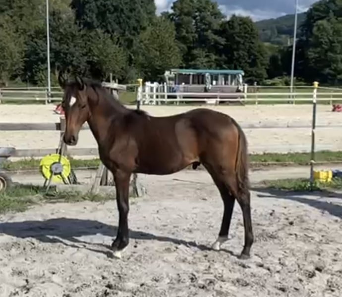 Wij bieden hier een mooi hengstveulen uit eigen fokkerij aan. Uit de moeder zijn al meerdere nakomelingen succesvol in de dressuur tot en met L-klasse, vooral met kinderen. Bijvoorbeeld: haar 4-jarige dochter won al een vrijspringkampioenschap en behaalde bij haar eerste rijpaardproef direct de 4e plaats tegen uitsluitend grote paarden, is winnaar van de merrietest met een rijvaardigheidsscore van 9,0. De 5-jarige zoon is momenteel al veilig actief in het parcours, en de 6-jarige zoon is zeer succesvol in de veelzijdigheid tot en met klasse A. Alle broers en zussen beschikken over een geweldig karakter dat hen als kinderpony onderscheidt, maar wanneer het erop aankomt, tonen ze allemaal hun kwaliteit en bereidheid tot presteren. De moeder is door onze dochter succesvol voorgesteld in dressuur A** en springen tot en met klasse E. Ze is een geweldig kinderpony met de juiste instelling voor de sport, en dat kenmerkt al haar nakomelingen!