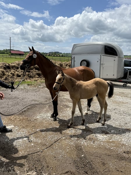 Poulain primé ! Né : 27.03.2025 Ce charmant étalon séduit par son caractère amical et sa grande volonté d'apprendre. Il montre déjà des approches prometteuses pour le dressage et a le potentiel de devenir un excellent partenaire sportif. Il grandit dans un environnement adapté et est bien socialisé. Pour toute question ou pour plus d'informations, je suis à votre disposition. Venez nous rendre visite et convainquez-vous par vous-même de ce superbe cheval !