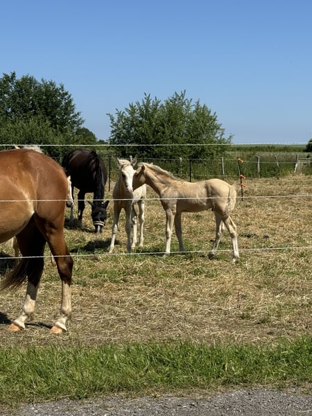 Ich verkaufe dieses typvolle Hengstfohlen von Crown Dramatic aus einer Calvin Klein (xDanny Gold) Mutter. Er bewegt sich sehr gut in allen drei GGA. Bei Interesse gerne melden.