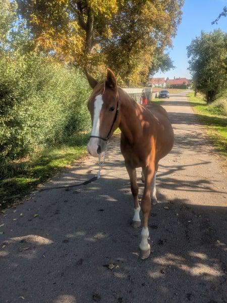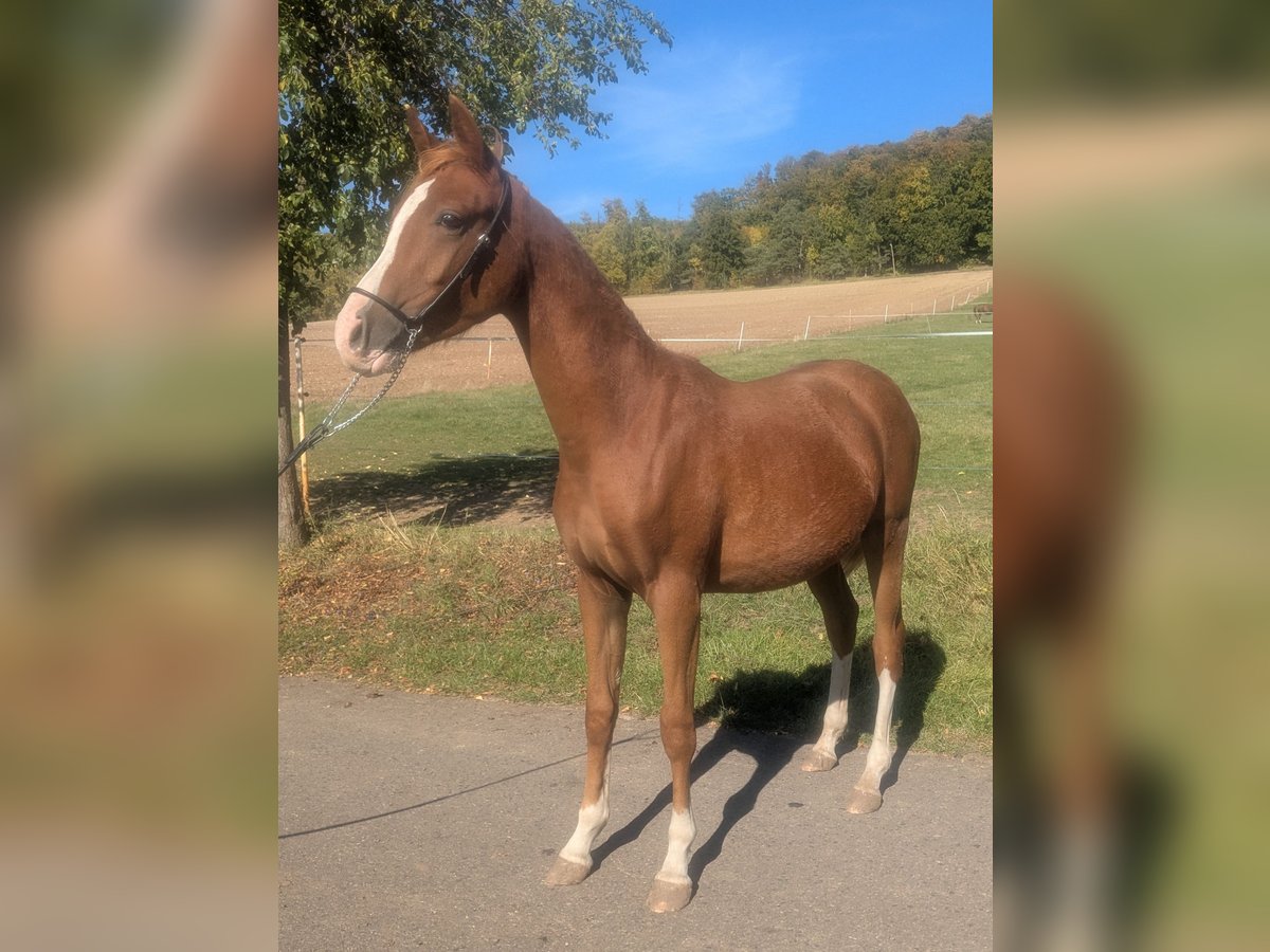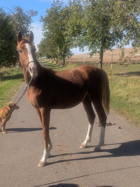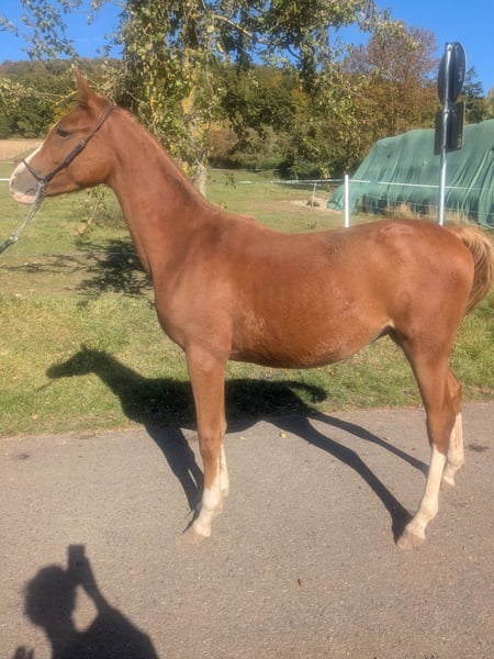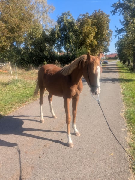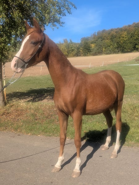For sale is a promising German Riding Pony stallion (Arabian cross), born in 2024. Standing at 14.2 hh and featuring a striking chestnut coat, he is truly eye-catching. This talented stallion shows great potential in show jumping and is ideal for ambitious riders seeking a versatile partner. He is well-socialized. His friendly nature and eagerness to learn make him an excellent companion. Please feel free to contact me for more information or if you are interested. Phone: +49 152 52194659