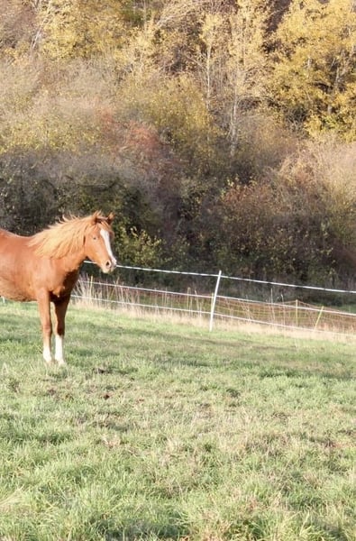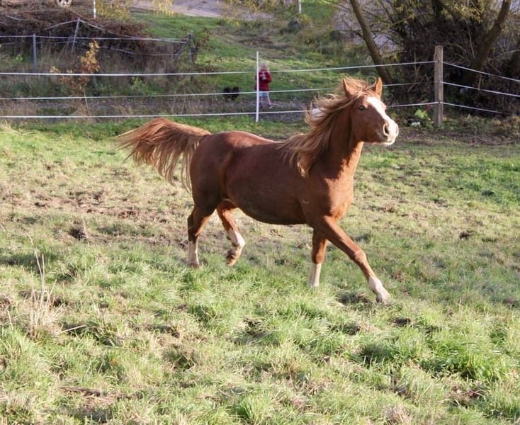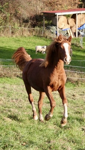 German Riding Pony stallion for sale – ideal for dressage or leisure riding! We are offering a stunning, young-born Riding Pony stallion, foaled in 2024. He impresses with his elegant chestnut coat and four white socks. The stallion is healthy, well-groomed, and has been lovingly raised. He is perfectly suited for ambitious riders seeking an expressive and talented pony. Please feel free to contact me for more information or to arrange a viewing!