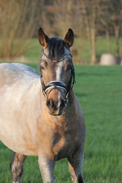 With a heavy heart and solely due to lack of time, we are offering our self-bred riding pony stallion for sale. *Born February 2, 2023 LH Nonplusultra DW (FS Numero Uno) x Cassini x Golden Dandy x Valido x Brillant 14.6 hh Buckskin Roan Noui impresses not only with his extraordinary color but, above all, with his impeccable character and excellent basic gaits. From the very beginning, he has proven to be very human-oriented, well-behaved in handling, and easy to manage in daily routines. He has a good conformation and stands correctly on his legs. As a foal, he was already awarded the Gold Foal prize. He shows no stallion behaviors and currently gets along effortlessly with a mixed herd of geldings in an open stable, demonstrating very social and tolerant behavior. He is regularly handled by the farrier, fully vaccinated, and currently being lunged on a long rein. He has already demonstrated his talent in free jumping, clearly reflecting the aptitude of his sire, who has proven himself equally in dressage, show jumping, and eventing. For us, he would have been an interesting candidate for breeding, but unfortunately, there is not enough time. A veterinary examination can be arranged at the buyer’s expense; he has never been lame or ill with us. We wish for him a loving home where he can be further nurtured and realize his full potential.