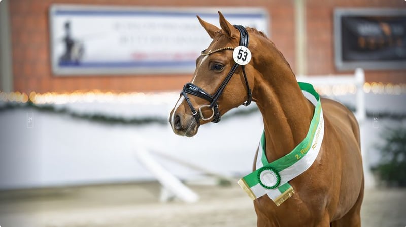Vor wenigen Tagen wusste dieser junge Hengst bei seinem ersten öffentlichen Auftritt vollumfänglich zu überzeugen und wurde mit einem positiven Körurteil ausgezeichnet. Aufgrund seiner herausragenden Leistung an dem Tag konnte er sich als zweiter Reservesieger rangieren und erhielt zudem den Titel der Prämienanwartschaft. Damit ist der Grundstein für eine vielversprechende sportliche und züchterische Karriere gelegt, die durch sein außergewöhnliches Pedigree nahezu vorgezeichnet ist. Mit FS Numero Uno NRW als Vater führt dieser Hengst einen der prägendsten Vererber der modernen Ponyzucht im Pedigree. Typ, Bewegung, Charakter und Rittigkeit zeichnen FS Numero Uno nicht nur selbst aus – genau diese Qualitäten vererbt er in bemerkenswerter Konstanz an seine Nachkommen. Zahlreiche Siege und Platzierungen bis hin zur Klasse S*** im Turniersport unterstreichen eindrucksvoll seine Ausnahmequalität. Doch nicht nur väterlicherseits überzeugt das Pedigree mit Leistung: Seine Mutter ist keine geringere als die Vollschwester zu D-Gold AT NRW. Auch der weitere Mutterstamm ist von herausragender Qualität. Die Mutter Dame d’or AT ist Staatsprämienstute und absolvierte ihre Stutenleistungsprüfung mit einer Endnote von 8,0. Sie steht damit für Leistungsbereitschaft, Rittigkeit und züchterische Substanz. Die Großmutter ist keine Geringere als die Elitestute Damenwahl K WE, die 2015 unter ihrer Reiterin Jaqueline Schurf den Titel der Bundeschampioness der dreijährigen Reitponys in Warendorf errang. Sie komplettiert dieses außergewöhnliche, erfolgsgarantierende Pedigree auf eindrucksvolle Weise. Alle weitern Informationen hier: https://auction.pferdezucht-rheinland.de/auctions/df7dab23-9e97-425e-159a-08de37f66d98/item-details/979c0b69-cd20-4693-7eaf-08de414ebd33