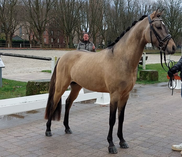 Der kleine Prinz vom Filstal ist ein Pony aus 2021 mit derzeit einem Stockmaß von 1.44m. Er ist nicht nur optisch ein echter Herzensbrecher er lässt auch unter dem Sattel keine Wünsche offen. Seine Mutter Frl. Felicitas war in den Jahren in denen sie im Sport ging das erfolgreichste Baden Württemberger Pony in der Vielseitigkeit. Sie hat mehrmals die Prüfungen in der Vielseitigkeit A * und ** Sterne gegen Großpferde gewonnen und war auch in L-Springen siegreich gegen Großpferde. Sie hat die richtigen Einstellung am Sprung und hat das an ihren Sohn weiter vererbt. Frl. Felicitas ist als Sportregisterstute aufgenommen ins Zuchtbuch in Baden Württemberg. Prinz wurde gekört und süddeutsch anerkannt. Mittlerweile geht er stressfreier als Wallach durch die Welt. Er wurde solide angeritten ist brav und willig und sehr rittig, wurde aber erst spät gesprungen (Dezember 2025).Die Bilder sind aus den ersten 3 Springeinheiten seiner Ausbildung unter dem Sattel. Sofort war zu bemerken, dass er hierfür genügend Herz hat und die richtige Einstellung hat. In der Dressur ist er willig, beginnt Last aufzunehmen und sich zu präsentieren. Alle drei Grundgangarten, wie bei einem gekörten Hengst üblich, sind überdurchschnittlich. Das Freispringen ist aus seiner Körung und der süddeutschen Anerkennung. Im Film im dem er steht wird sehr schön beschrieben wie er einzuschätzen ist. (Ton anmachen) Sein Vater ist Kastanienhofs Donnertrommler. Kastanienhof Donnertrommler ist ein dressursportlicher Musterschüler und Jahr für Jahr ein Erfolgsgarant. Er war siegreich in Reitpferde- und Dressurpferdeprf. Kl. A und mehrfach platziert in Dressurpferdeprf. Kl. L. 2017 und 2018 platzierte er sich im Bundeschampionatsfinale in Warendorf. Ende 2017 absolvierte er seinen HLP-Kurztest in Münster-Handorf als Sieger wobei er in allen Grungangarten gleichmäßig hoch benotet wurde und in der Rittigkeit mit 9,08 erwartungsgemäß punktete. Auf der FN-Bundeshengstschau 2019 in Berlin war Donnertrommler Endringhengst der jüngeren Hengste und wurde mit der FN-Bundesprämie ausgezeichnet. Mittlerweile ist Donnertrommler im FEI-Sport erfolgreich und in 2021 auch bereits international in Kronberg platziert. Diese Leistung ist kein Zufall: in direkter Folge reihen sich in seinem Pedigree die internationalen FEI-Sieger Dornik B, Kennedy WE und FS Don’t Worry aneinander. Alle drei feierten ebenfalls Erfolge in Dressur Klasse S und waren bis ins hohe Alter sportlich aktiv und erfolgreich. St.Pr./El.St. Diva Delight ist Vollschwester des WE-Siegerhengstes Kastanienhof Kentaur WE und Halbschwester des WE-Siegerhengstes Kastanienhof Cockney Cracker WE. Die Ur-Großmutter Nontesse brachte neben Delight die beiden gekörten Hengste Danny’s Dream (S-Dr.) und Delgado (M-Dr., 7. Pl. EM 2001) sowie zahlreiche Sportponys in allen Sparten. Der kleine Prinz vom Filstal wartet auf SEIN Kind mit dem er viele viele Jahre erfolgreich im Sport seinen Weg gehen kann. Kein Notverkauf und kein zur Verfügung stellen. Der Preis ist im Moment noch verhandelbar. Wenn er weiter in Beritt geht und dann auf Turnier vorgestellt wird, kann er nicht auf dem Stand bleiben. Standort Baden Württemberg.