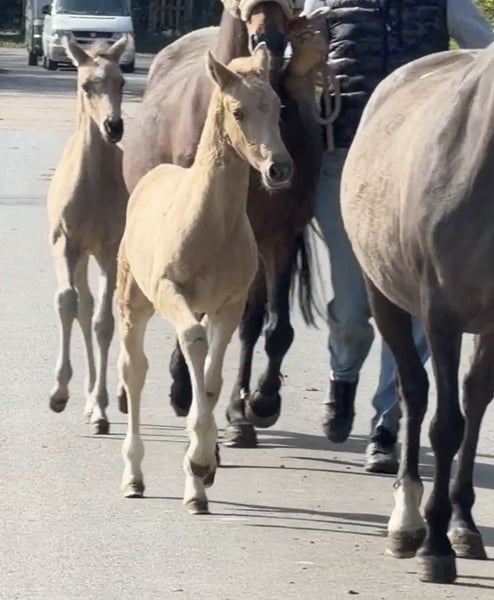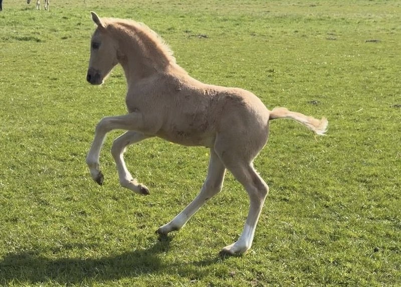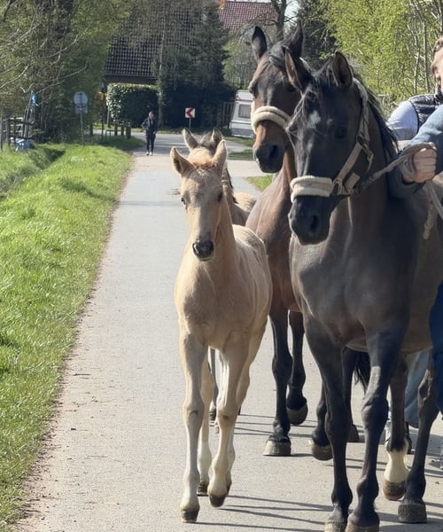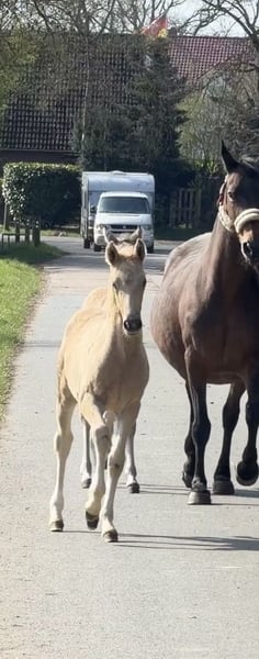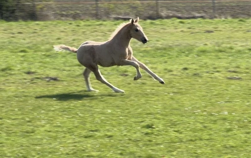 Dieser Palominohengst ist voller Freude : Hallo ich bin noch jung , aber ich bin schon recht selbstbewusst . Angst habe ich nicht - ich trabe auf dem Weg zur Weide gern vorweg ! Mit macht es soviel Spaß mich zupräsentierenn- the Show must go on - ich habe sehr viel Takt und „ Riss“ - dh ich zeige mich immer in Angebermanier - warum - weil es mir Spaß macht und ich so toll traben kann 😄😉 Aber auch mein Galopp ist sehr eindrucksvoll und immer bergauf ….. Jaaaaa ich möchte ein Hengst werden - zur Körung … Seht - schaut her - so bin ich . Da ich meinen Schwerpunkt wohl inder Dressur habe und ich überall gut sein möchte - übe ich auch schon mal das Springen …, Luftsprünge machen einfach Spaß . Zum Glück bin ich immer auf der Weide - wenn wir aus dem Stall zur Weide gehen , dann platze ich fast vor Freude . Herrlich - ich liebe das Leben . Wer mich kaufen möchte wird sicher viel Freude an mir haben und dann rocken wir das Viereck zusammen , wenn ich groß bin 🏆