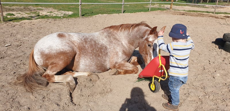 Onze Seraphina (Fina) is echt een droom. Ze is een kleurrijke blikvanger, trouw, slim en zeer goed geritten. Helaas moet ik, met pijn in mijn hart, toegeven dat ik haar met twee kleine kinderen simpelweg niet meer kan bieden wat ze nodig heeft. Ze wil het liefst heel veel tijd doorbrengen met haar mensen. Seraphina is een Duitse Reitpony / Quarter Horse mix. Fina is voorzichtig aangeleerd en daarna door mij recreatief en bitloos verder gereden. Door mijn zwangerschap is ze echter al een tijdje niet meer gereden. Ze heeft van haar moeder een lichte spondylose geërfd, waardoor ze geen gewichtsträger is! Als je vragen hebt over Fina, neem dan gerust contact met mij op. We geven haar echt alleen in de beste handen, als alles goed voelt, omdat dat voor mij heel moeilijk is. De prijs is daarbij niet belangrijk!