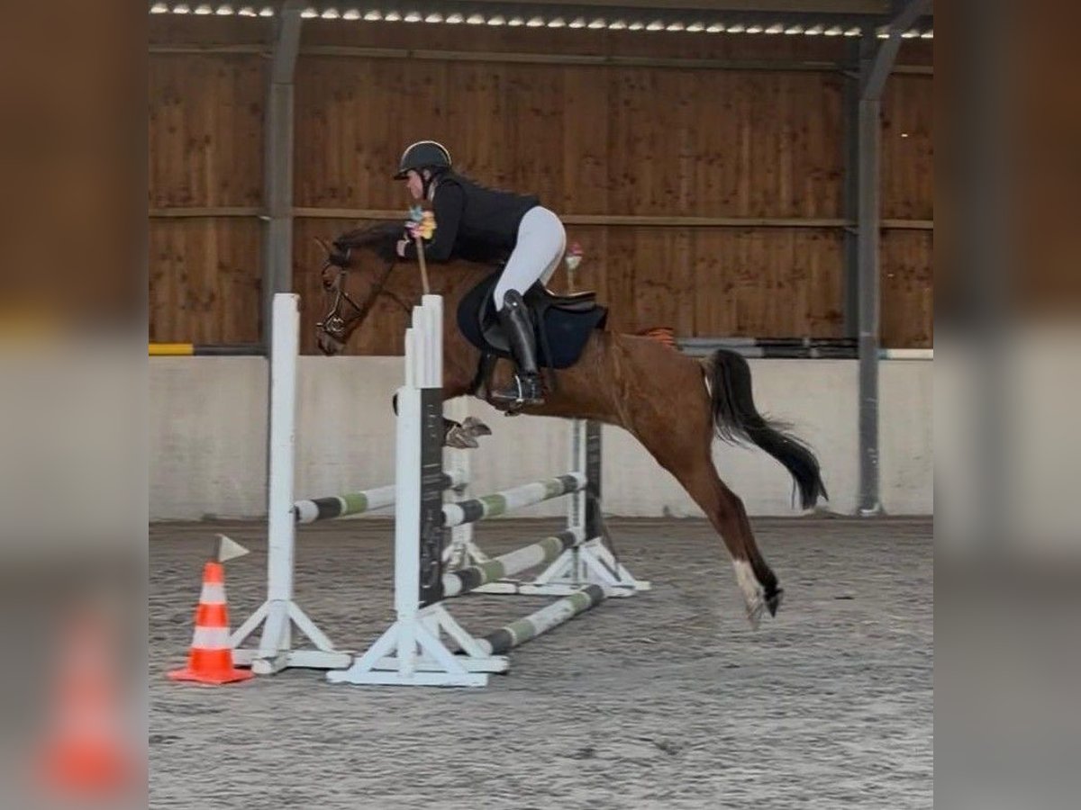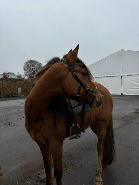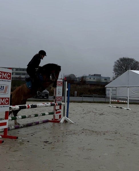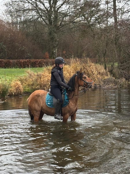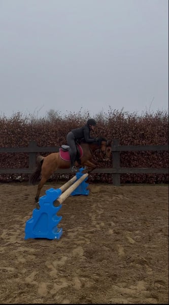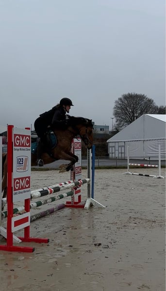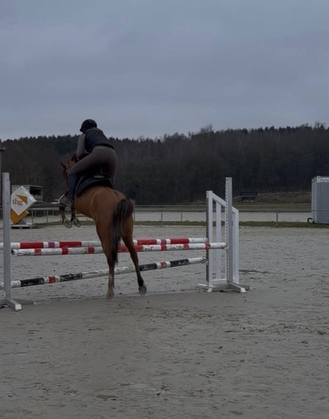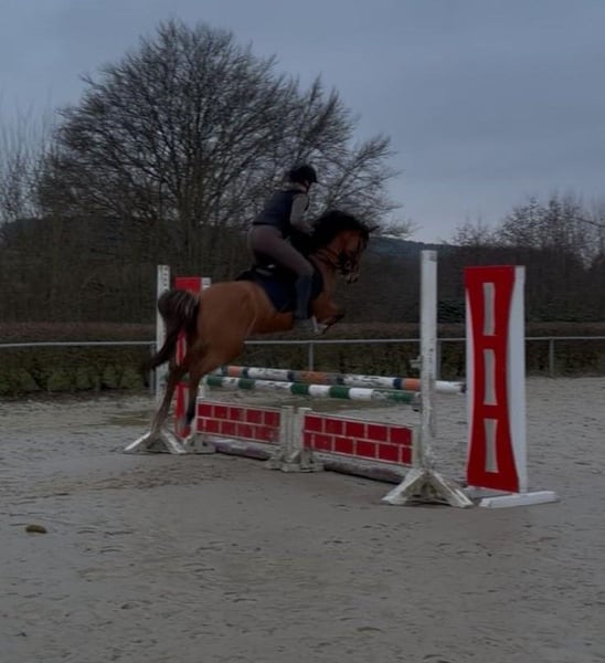 Zum Verkauf steht eine bald 11 Jahre alte, etwa 141cm große, Deutsche Reitpony Stute, eingetragen ins Stutbuch 1, mit voller Abstammung. Sie ist gut geritten und zeigt viel Vermögen und Ausdauer beim Springen. Da sie viel go hat, sollte man schon etwas reiten können. Sie ist aber nie böse und bockt auch nicht. Sie war schon mehrere Male auf Turnieren und macht das super mit. Bisher wurde sie in der Klasse E vorgestellt und sprang immer fehlerfrei mit Platzierung. Im Training spring sie auch schon auf A Niveau dies wurde aber kürzlich erst begonnen. Sie hat auf jeden Fall viel Talent und kann bei entsprechender Förderung weit kommen. Sie geht auch alleine ins Gelände und ist insgesamt cool und nicht schreckhaft. Auch im Umgang ist sie absolut brav und kennt auch Kinder. Preis steigt bei weiterem Training und sobald sie in Klasse A vorgestellt wurde! Krankheiten oder Allergien sind nicht bekannt. Eine AKU darf gerne gemacht werden. Für das Probereiten, Vorreiten oder anderes Ausprobieren des Pferdes berechnen wir 35€. Beim Kauf wird dies gutgeschrieben. Gerne anrufen oder eine Nachricht senden 0157 36803742 Alle Angaben ohne Gewähr, Preisänderungen vorbehalten, Transport möglich, Onlinekauf möglich