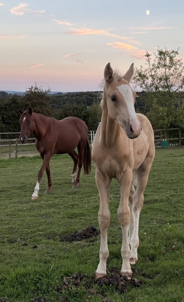 Zum Verkauf steht eine tolle, 2015 geborene Fuchsstute, mit bravem, schön gezeichnetes Hengstfohlen mit elastischen Bewegungen bei Fuß. Diese Stute eignet sich hervorragend für die Zucht. Nachkommen sind unter anderem: Glücksbote Hilgenroths Magenta Hilgenroths Magic Bei Interesse oder weiteren Fragen stehe ich Ihnen gerne zur Verfügung. Videos, weitere Bilder und Besichtigung bei Interesse natürlich möglich.