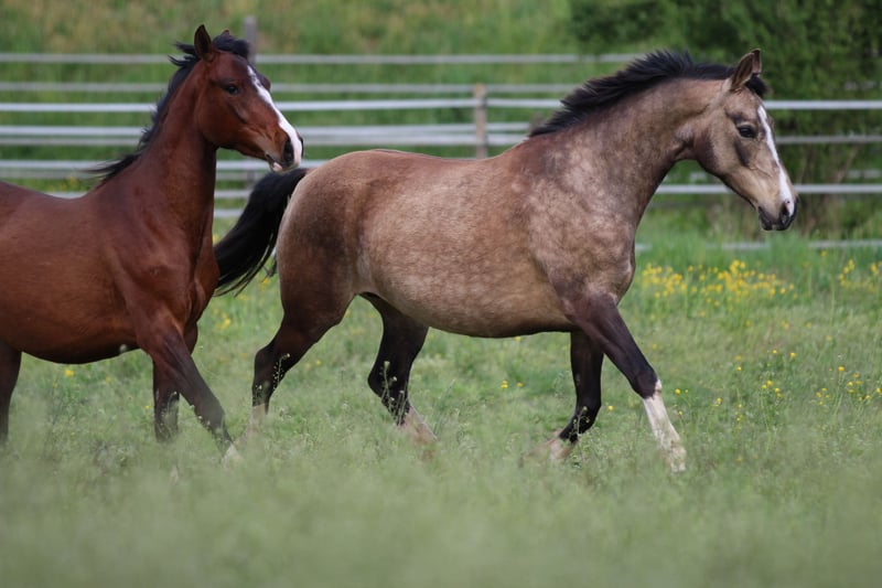 NALA ist eine wunderhübsche deutsche Reitponystute mit sehr guter Abstammung und in toller Farbe! Sie hat Go, ist sensibel und mag es zu arbeiten. Nala ist solide grundausgebildet, läuft auch mit fortgeschrittenen Kindern und Jugendlichen im Unterricht, und liebt lange Ausritte. Bei uns wird sie nach Natural Horsemanship gearbeitet. Außerdem geht sie zuverlässig in den Hänger, ist Schmiedefromm, regelmäßig geimpft entwurmt und hatte 2023 das erste Fohlen (steht auch zum Verkauf) Sie war eine durchweg super Mutter, alles unkompliziert und problemlos verlaufen. Nala wird in robuster Offenstallhaltung in einer gemischten Herde gehalten. Ist gesund, trittsicher und unkompliziert in Haltung und Fütterung. Bei starker Mückenbelastung Nähe Gewässer neigt sie zu leichtem Sommerekzem, welches mit Eincremen gut zu behandeln ist. Aufgrund ihres Temperaments und der Sensibilität nicht an Reitanfänger zu verkaufen. Stockmass 1,42m.